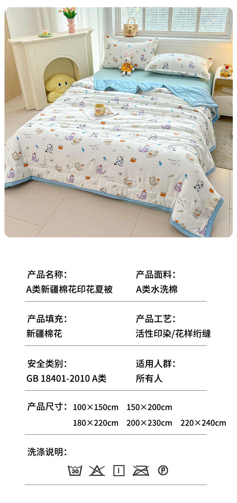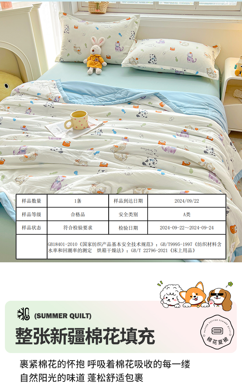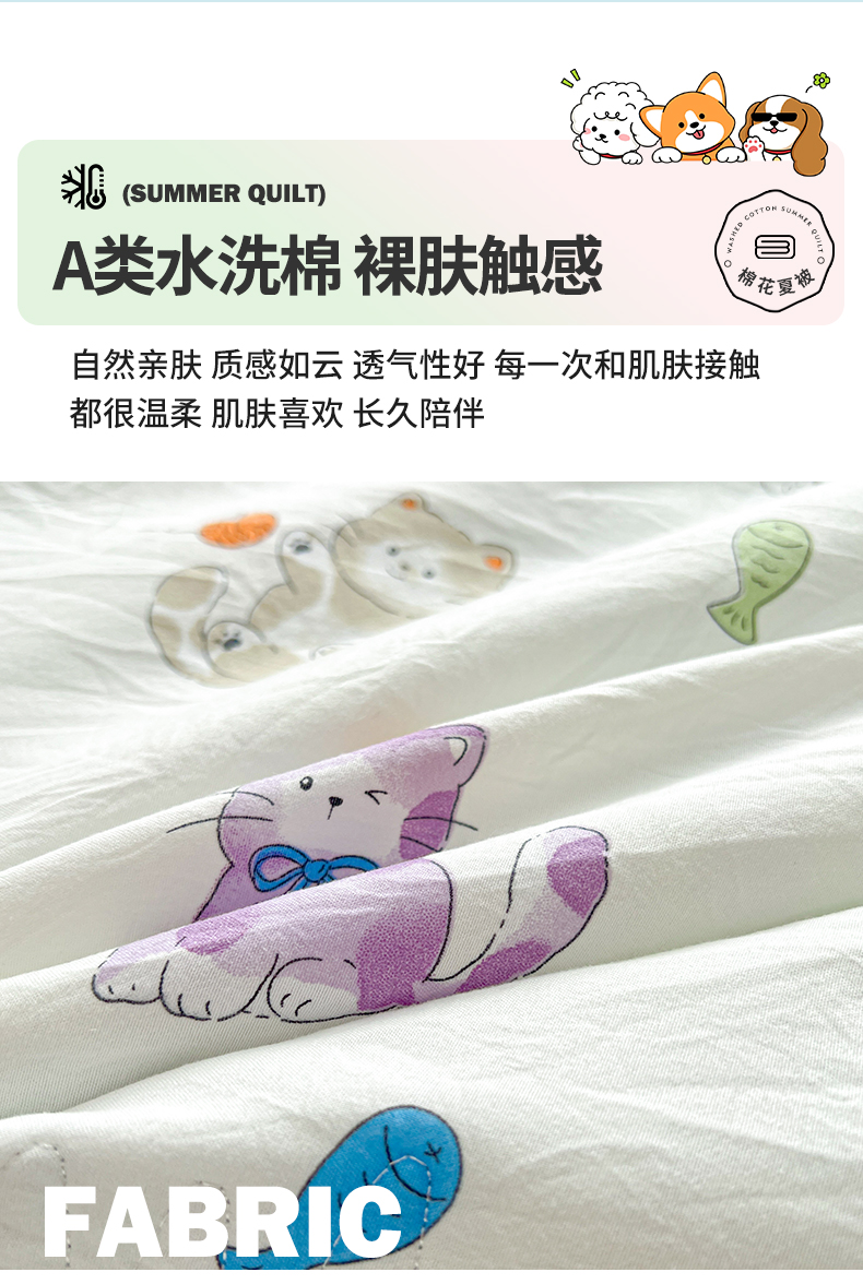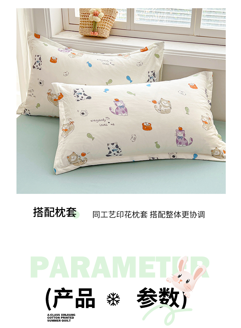 商品名称:西域种棉人·千百笠 2025新款A类新疆棉花夏凉被加宽包边水洗棉卡通印花吸湿透气棉花夏被空调被 凌香 许愿猫
