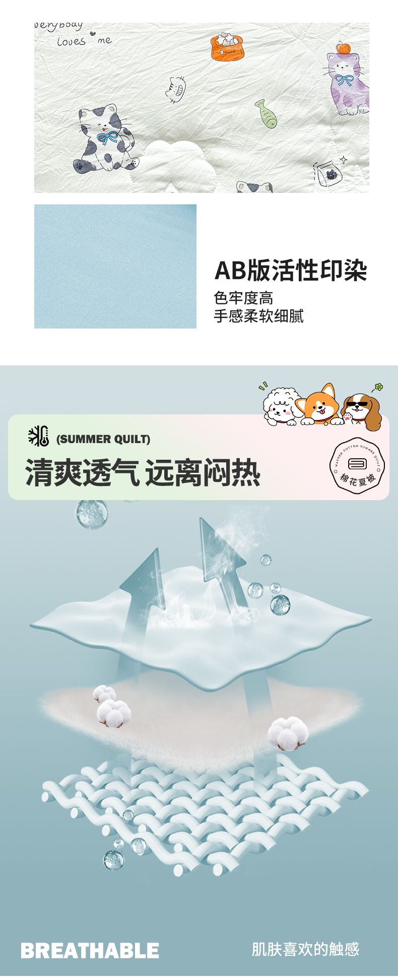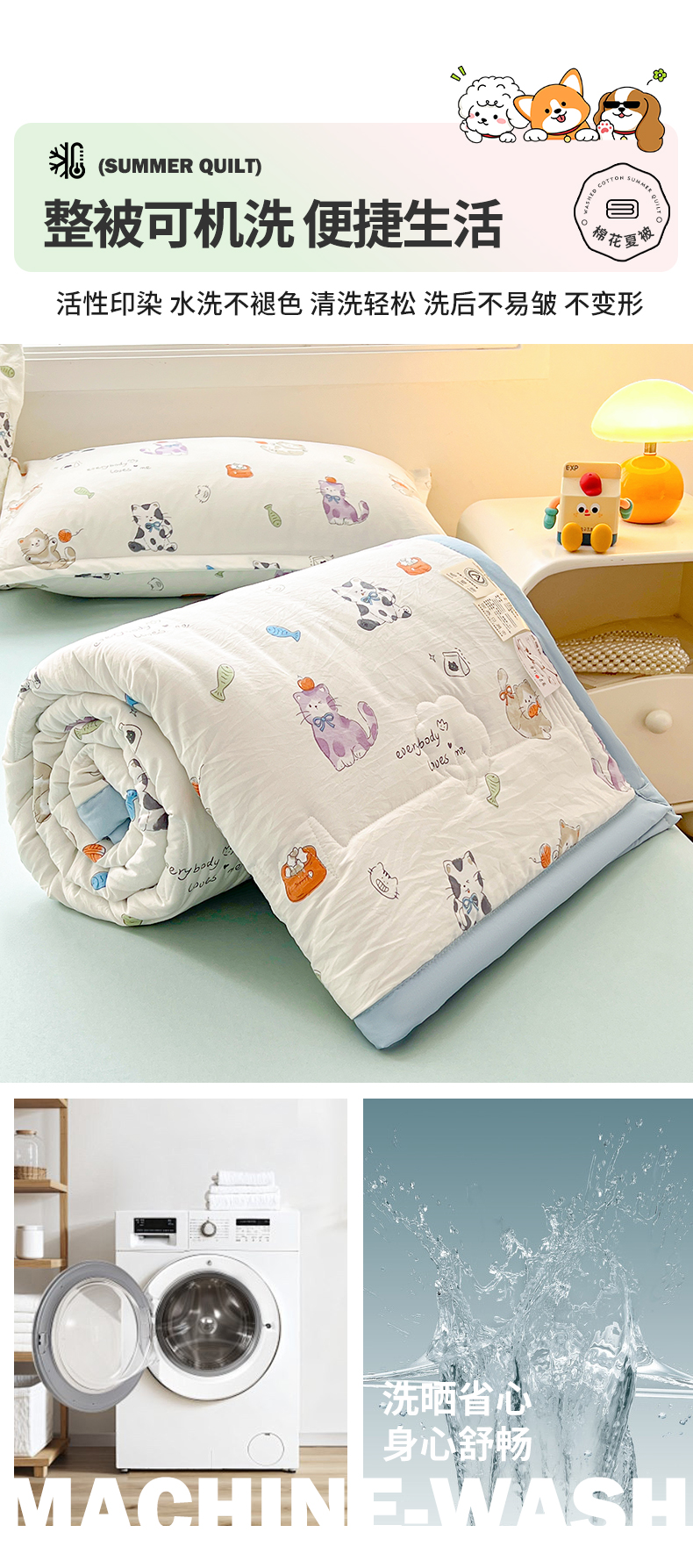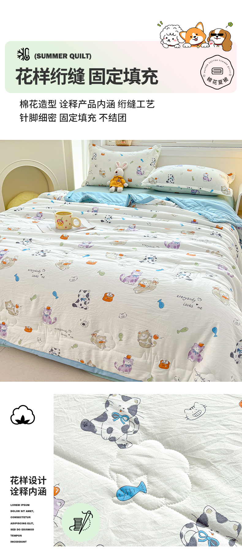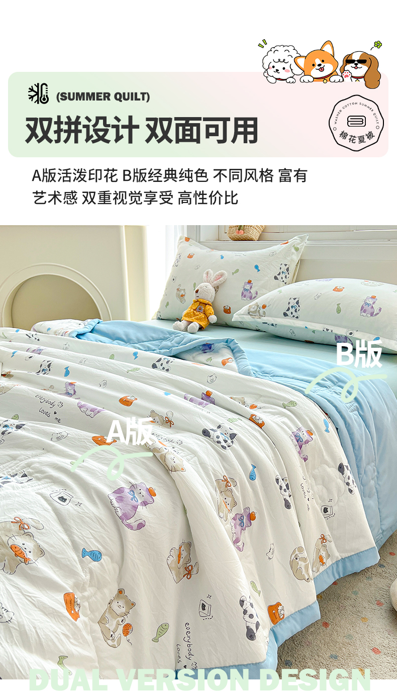 商品名称:西域种棉人·千百笠 2025新款A类新疆棉花夏凉被加宽包边水洗棉卡通印花吸湿透气棉花夏被空调被 凌香 许愿猫