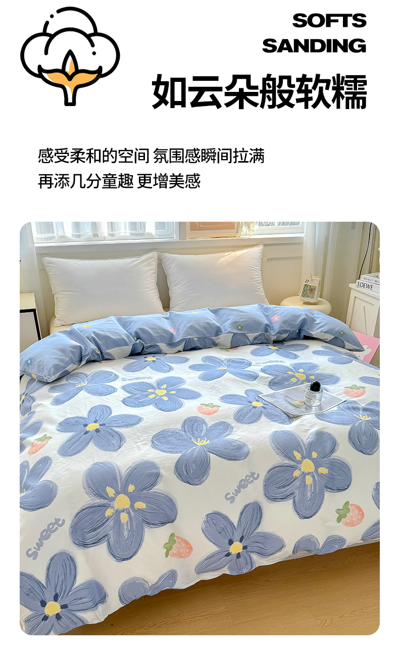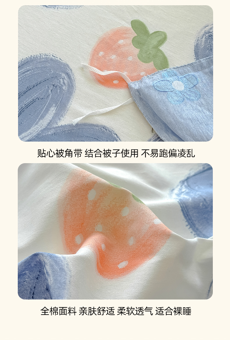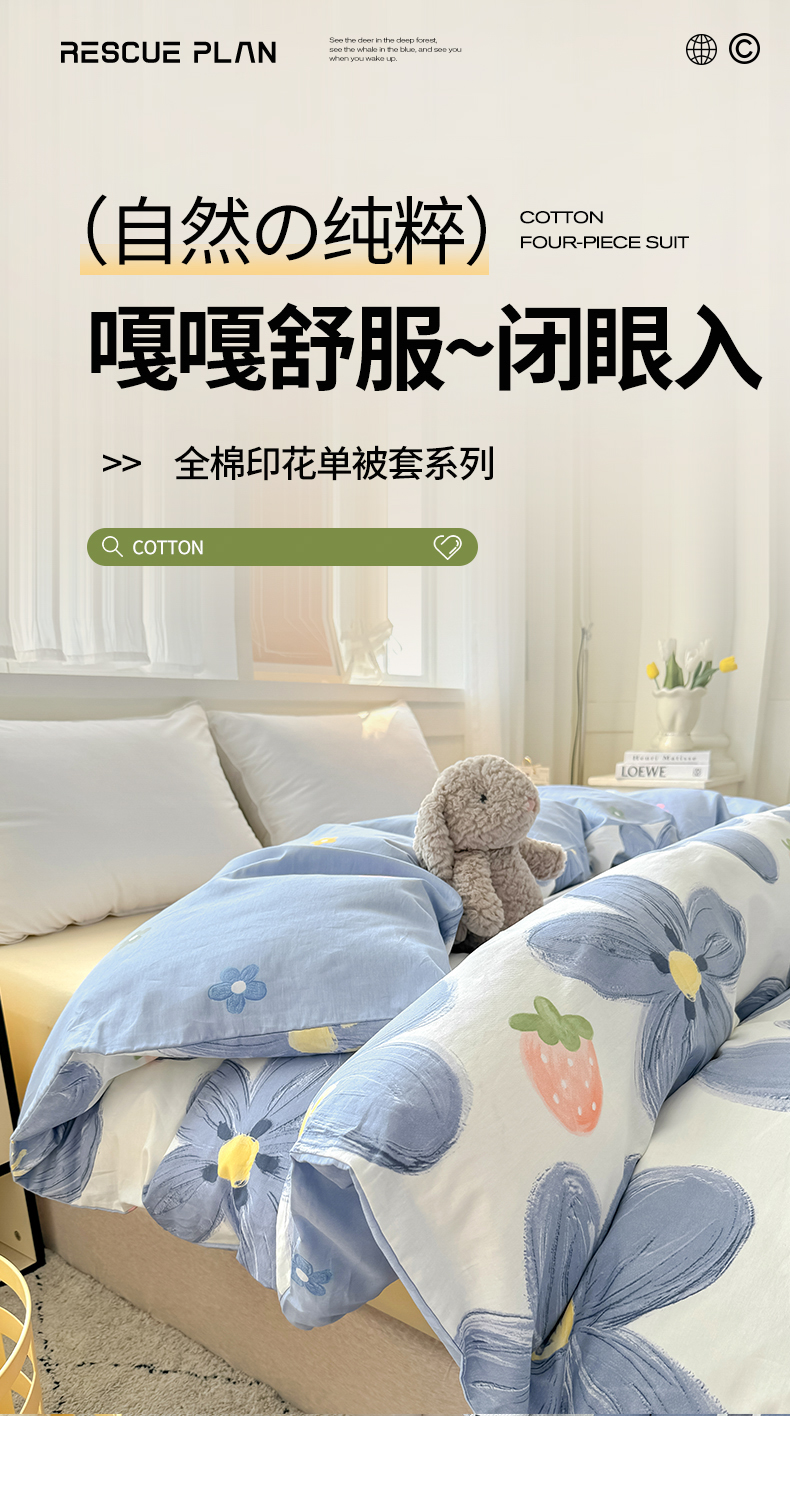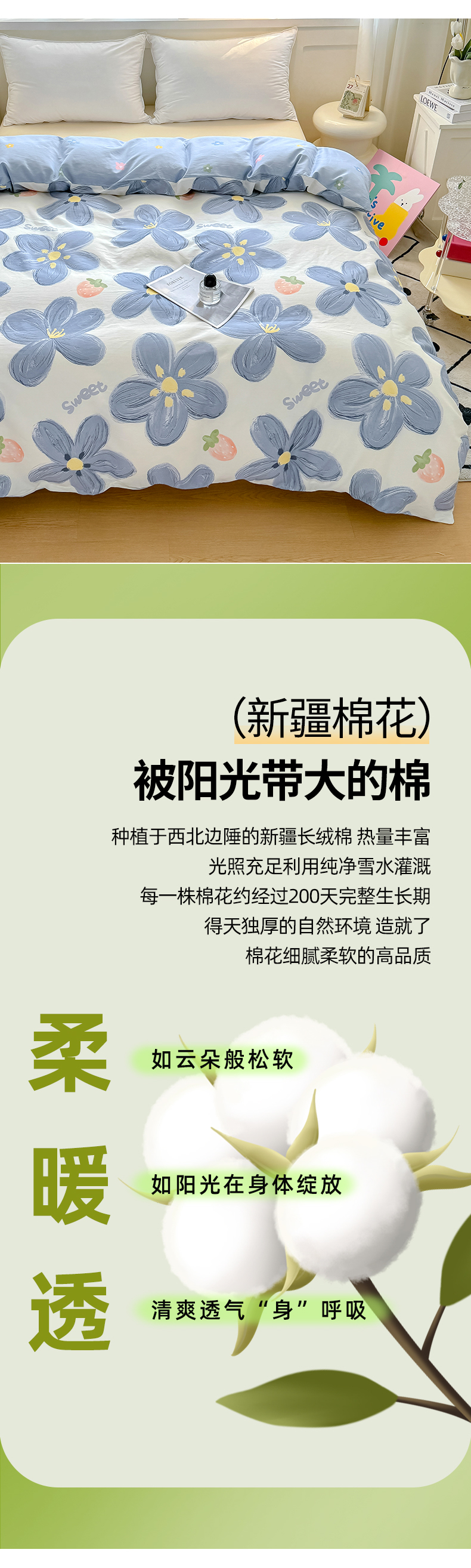 商品名称:红粉佳人家纺 2025春夏新款A类全棉纯棉12868纯棉单被套 蓝色甜心
