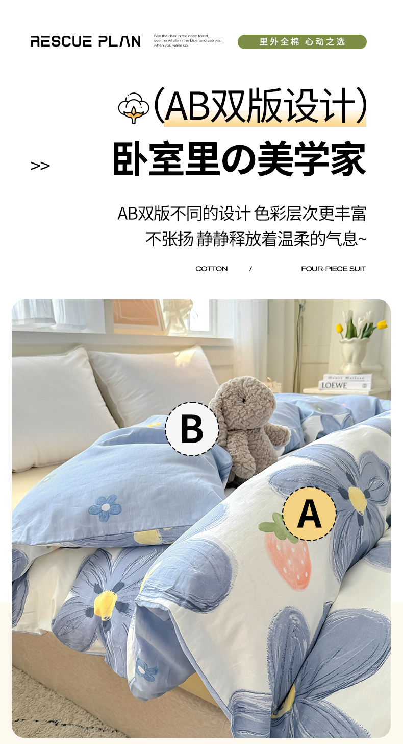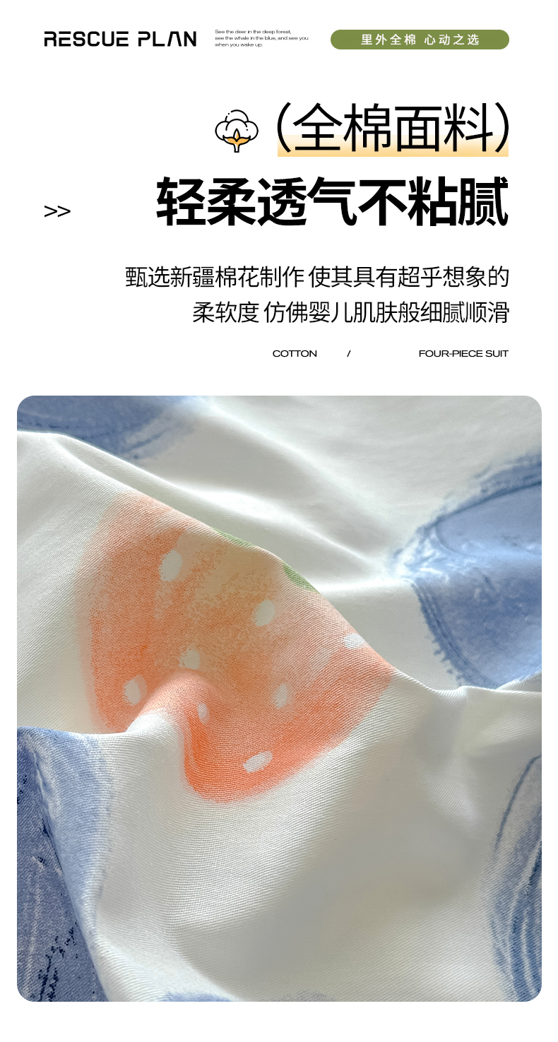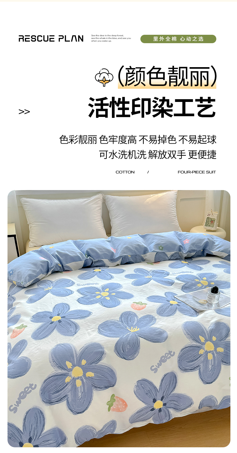 商品名称:红粉佳人家纺 2025春夏新款A类全棉纯棉12868纯棉单被套 蓝色甜心