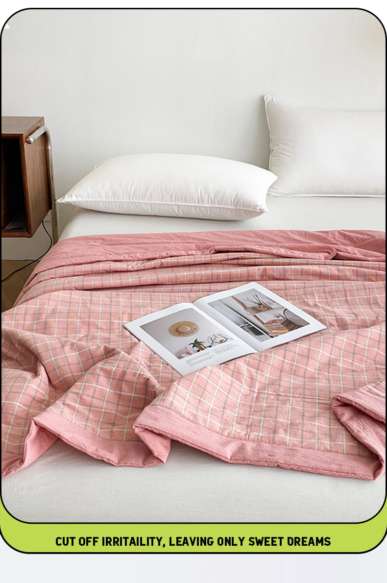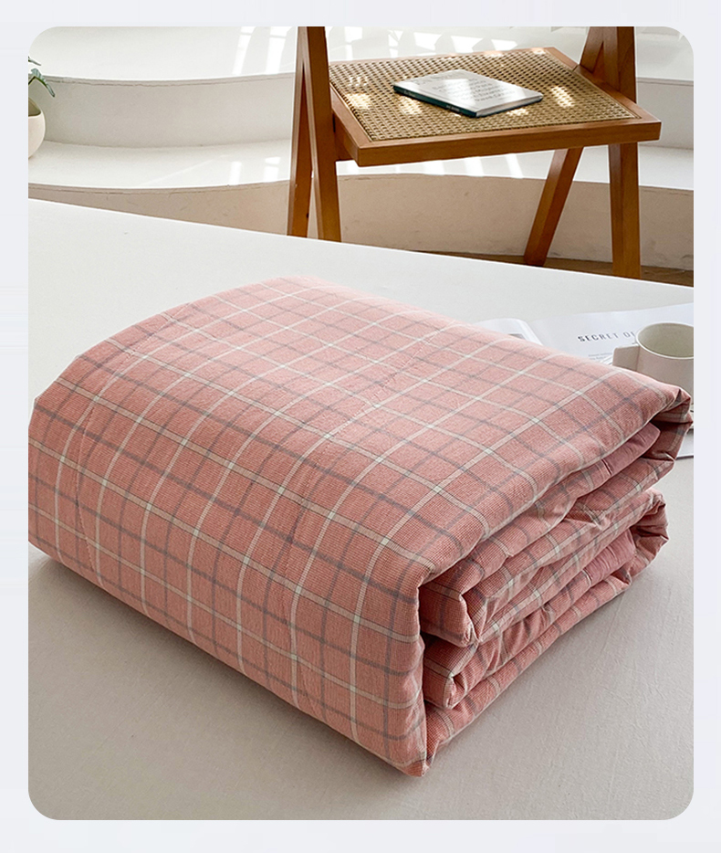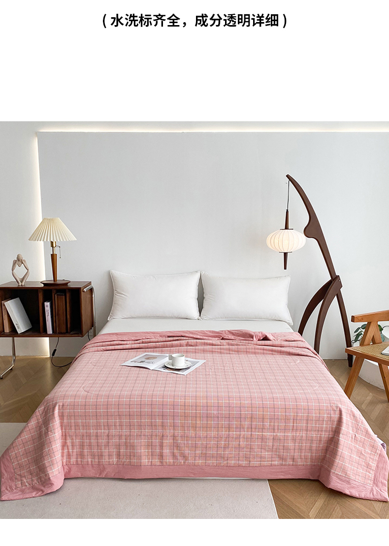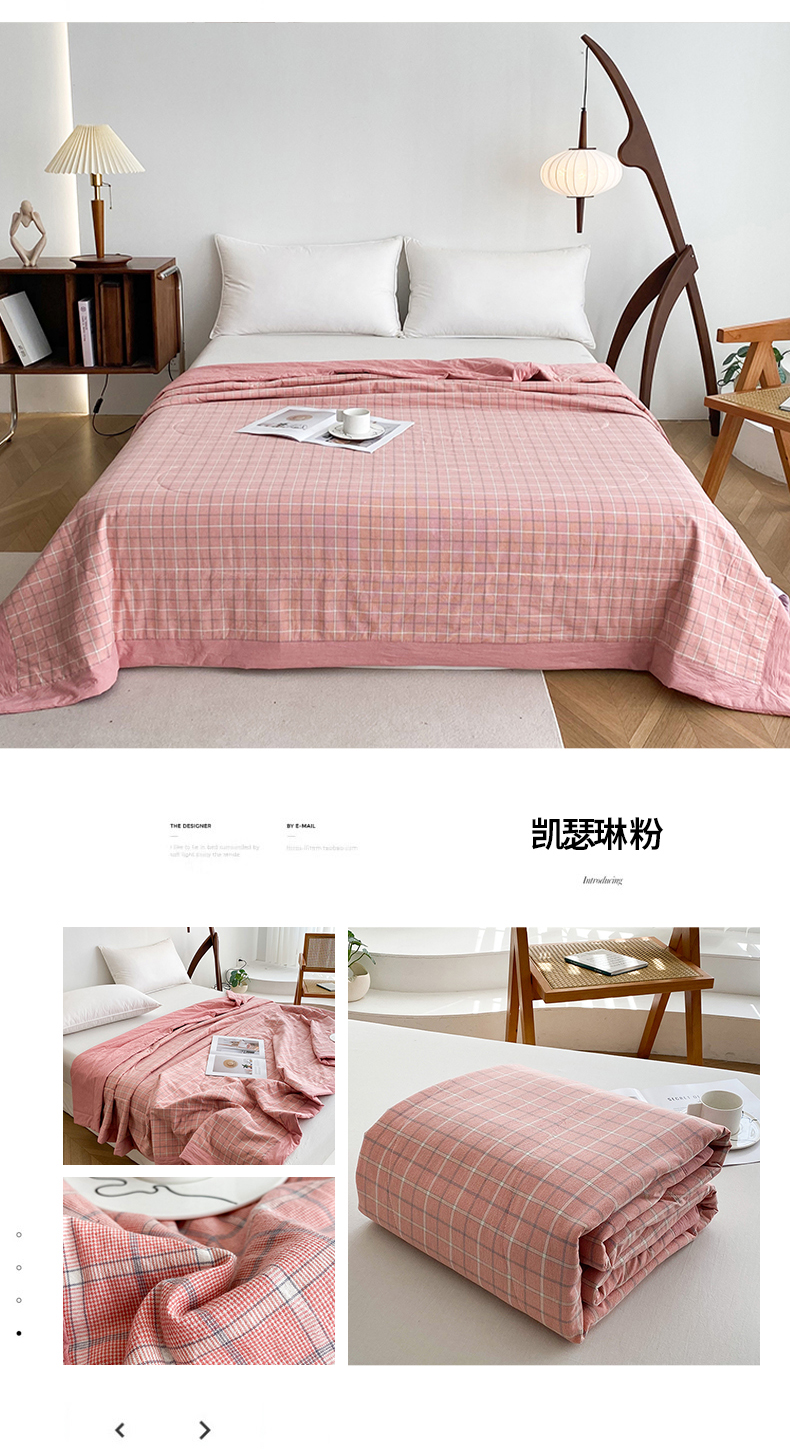 商品名称:青螺家纺 2025全棉水洗棉格子双面色织新疆棉花被AB版夏凉空调被 凯瑟琳 粉