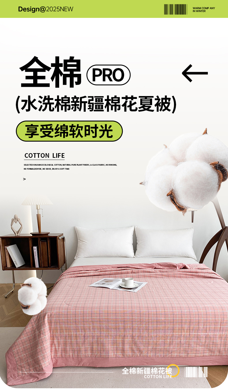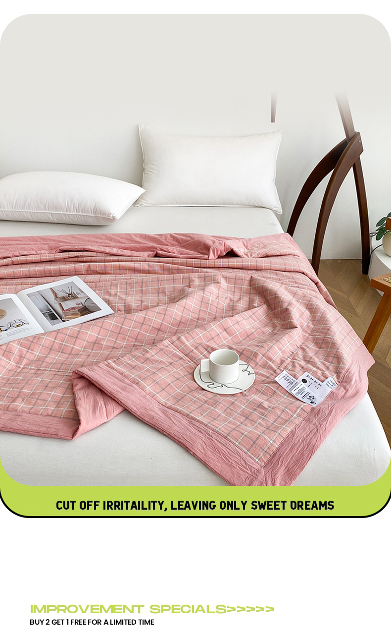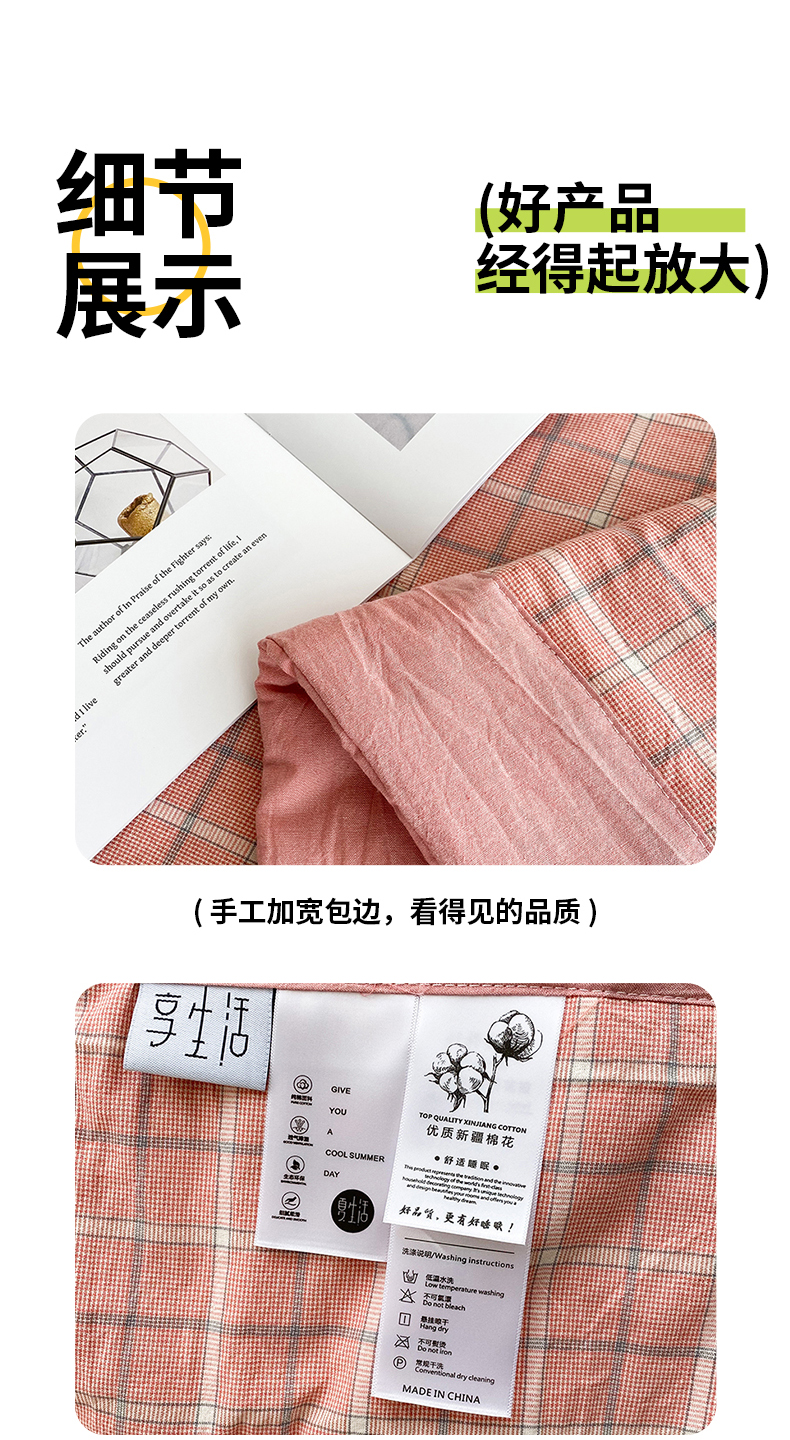 商品名称:青螺家纺 2025全棉水洗棉格子双面色织新疆棉花被AB版夏凉空调被 凯瑟琳 粉