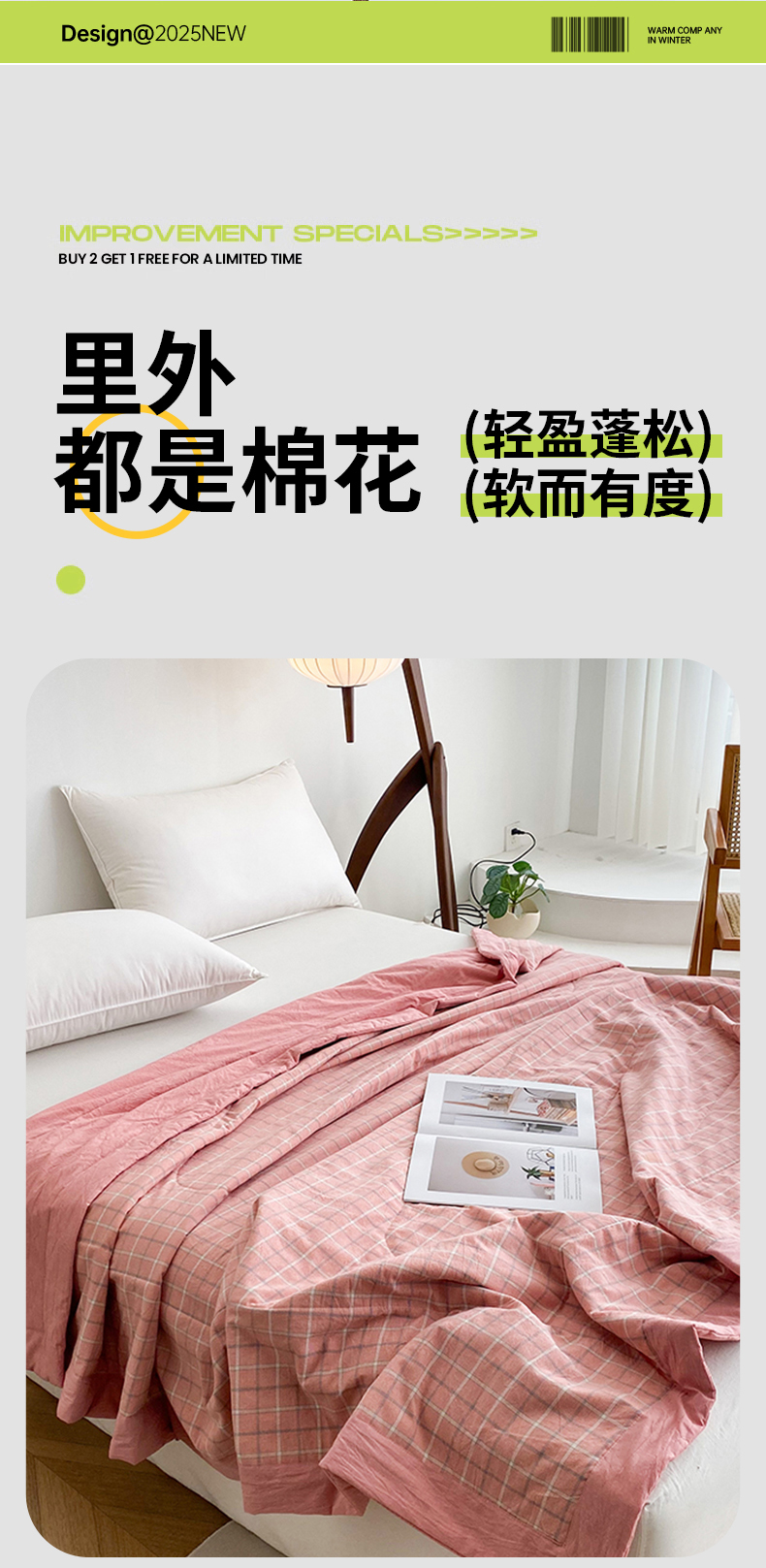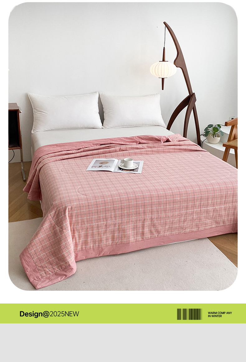 青螺家纺 2025全棉水洗棉格子双面色织新疆棉花被AB版夏凉空调被 凯瑟琳 粉