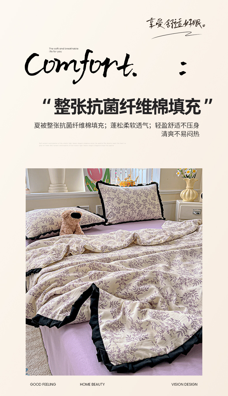 当前位置: 91家纺网 > 商品网购 > 床品套件 > 四件套 > 全棉普通四件套 > 妖妖家纺 2025新款有氧水洗糯糯公主风花边夏被四件套单夏被 草木悠然
