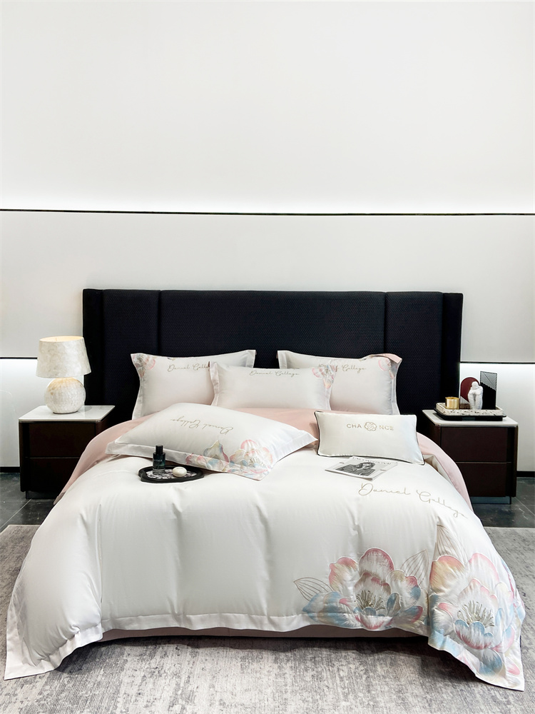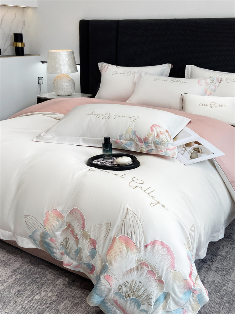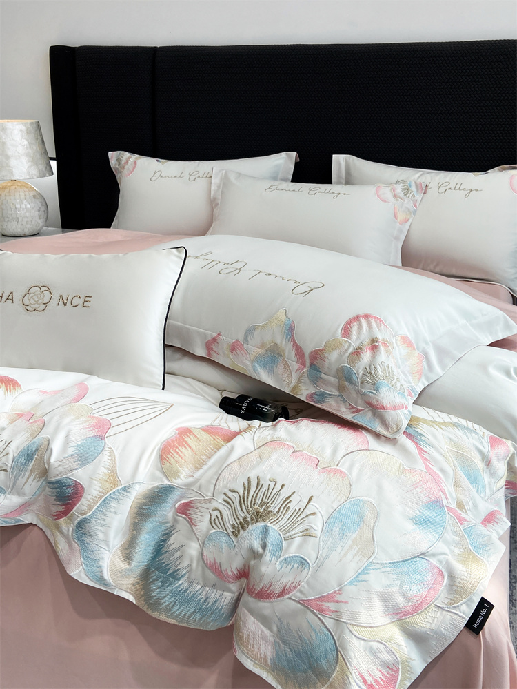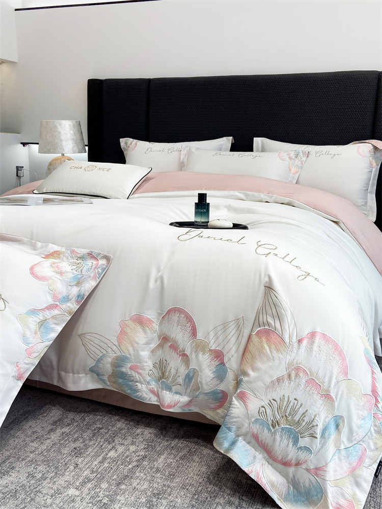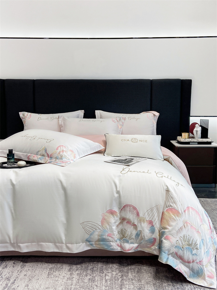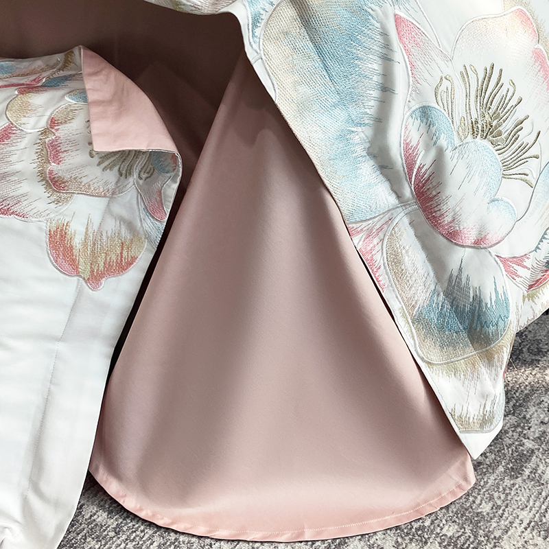 当前位置: 91家纺网 > 商品网购 > 床品套件 > 四件套 > 全棉普通四件套 > 家居1号家纺 2025新款花韵长绒棉四件套 花韵-白拼粉
