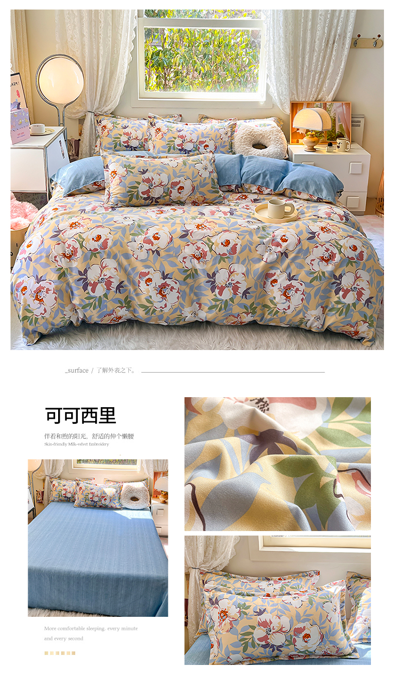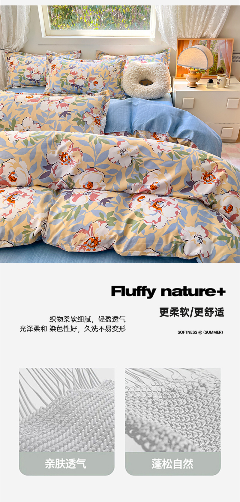 (总)曼璐家纺 2025新款小清新芦荟棉印花四件套,朝花夕拾,初夏,可可西里,喵星人,叶雨,初夏
