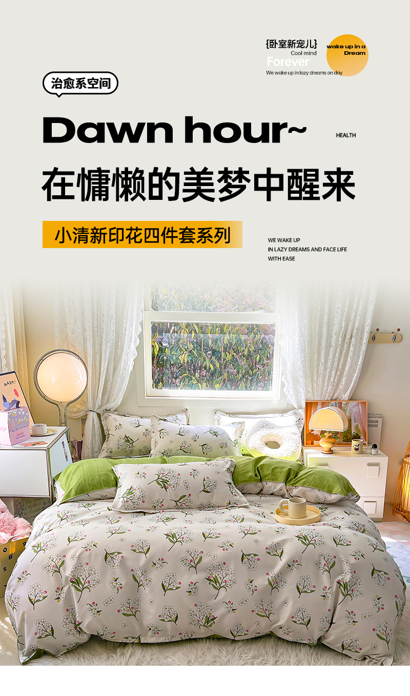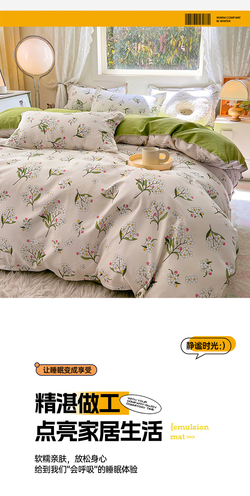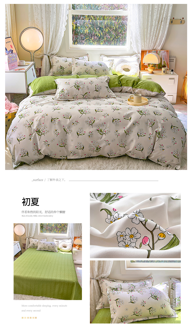 (总)曼璐家纺 2025新款小清新芦荟棉印花四件套,朝花夕拾,初夏,可可西里,喵星人,叶雨,初夏