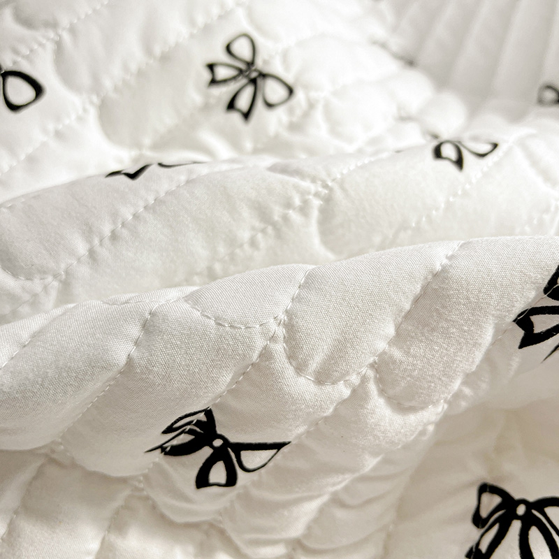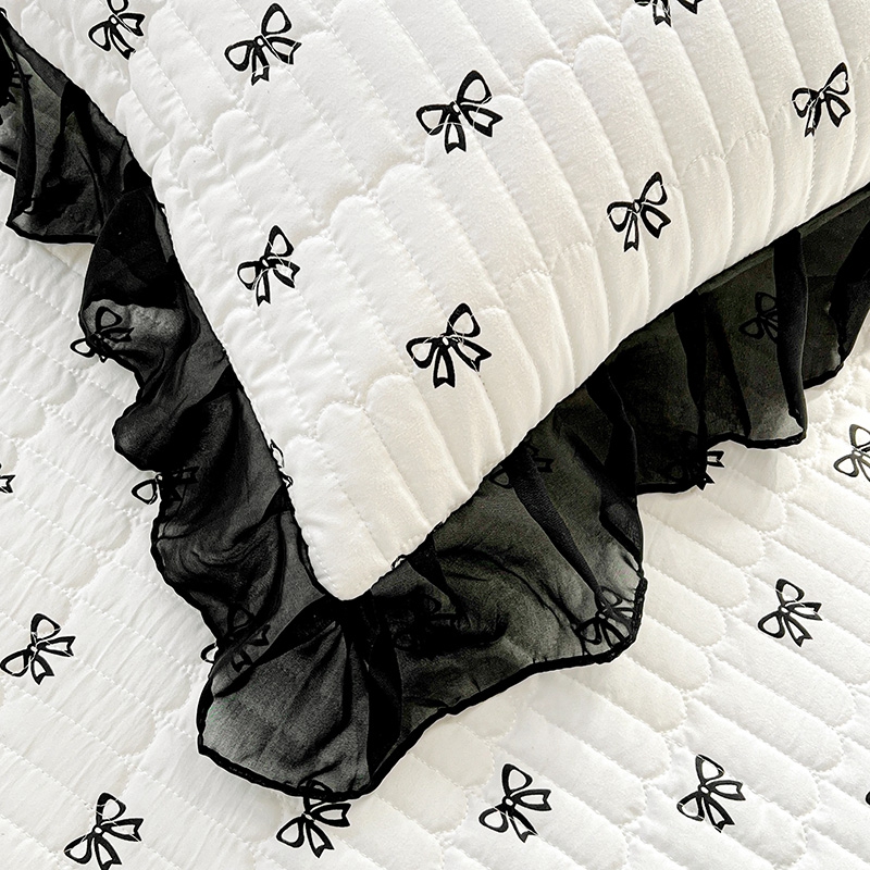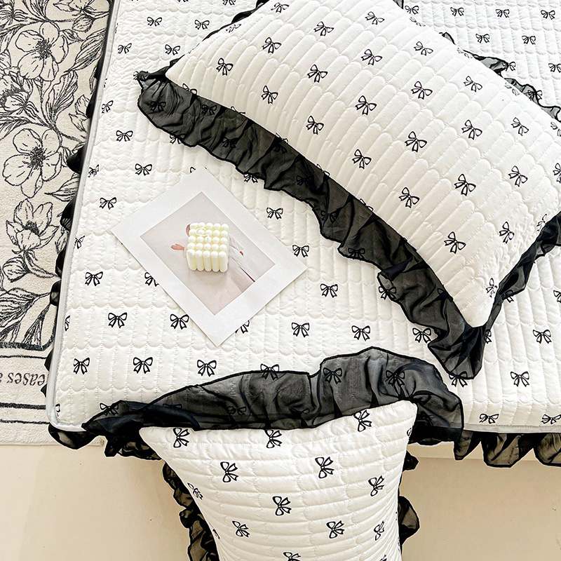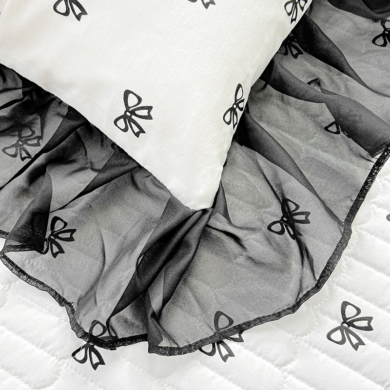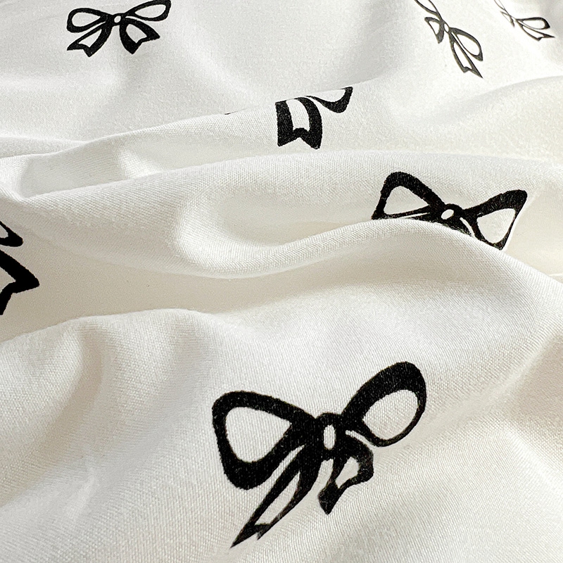 商品名称:艾橙家纺2025新款法式赫本风水洗棉印花雪纺花边单床笠 黑色蝴蝶结