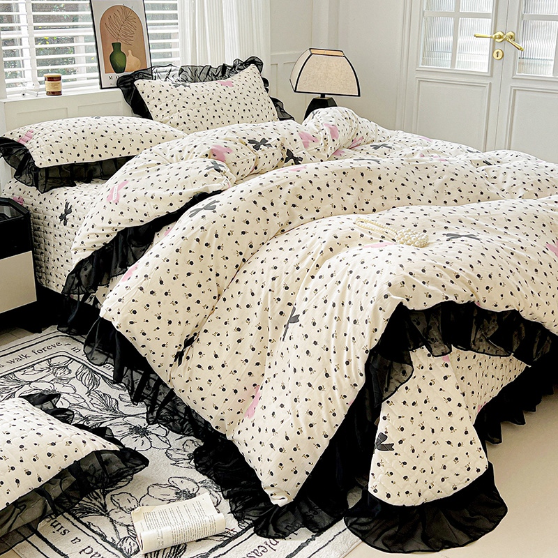 当前位置: 91家纺网 > 商品网购 > 床品套件 > 四件套 > 其它四件套 > 艾橙家纺2025新款法式赫本风水洗棉印花雪纺花边四件套 朵蔓花馨
