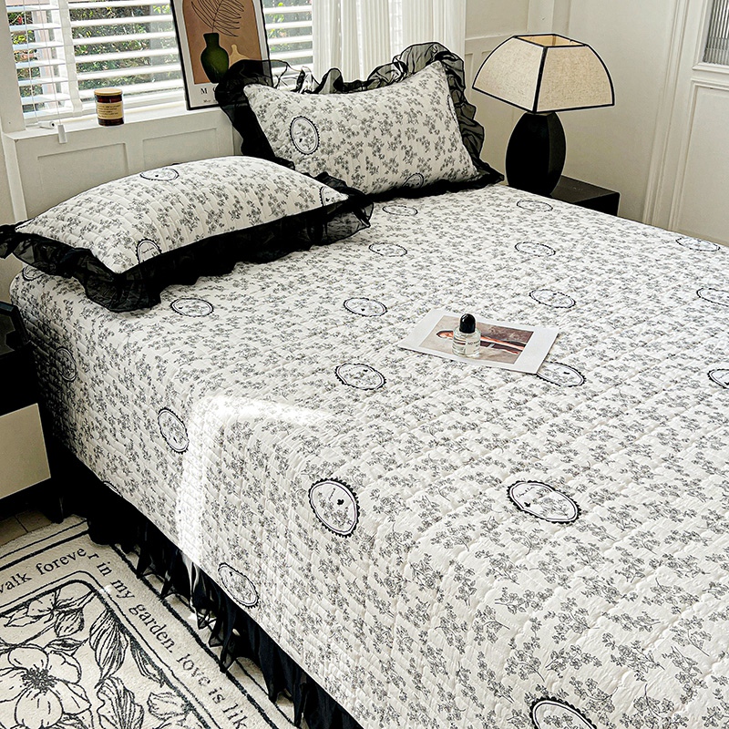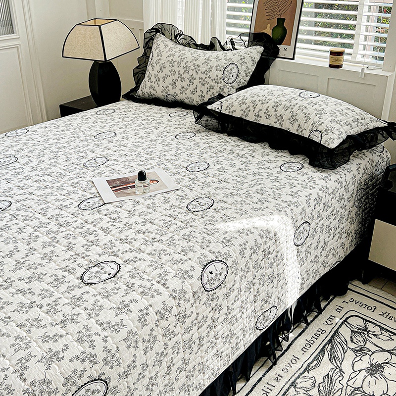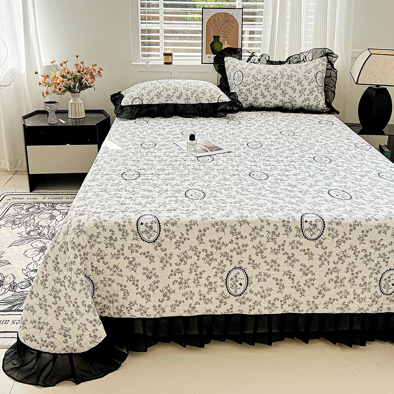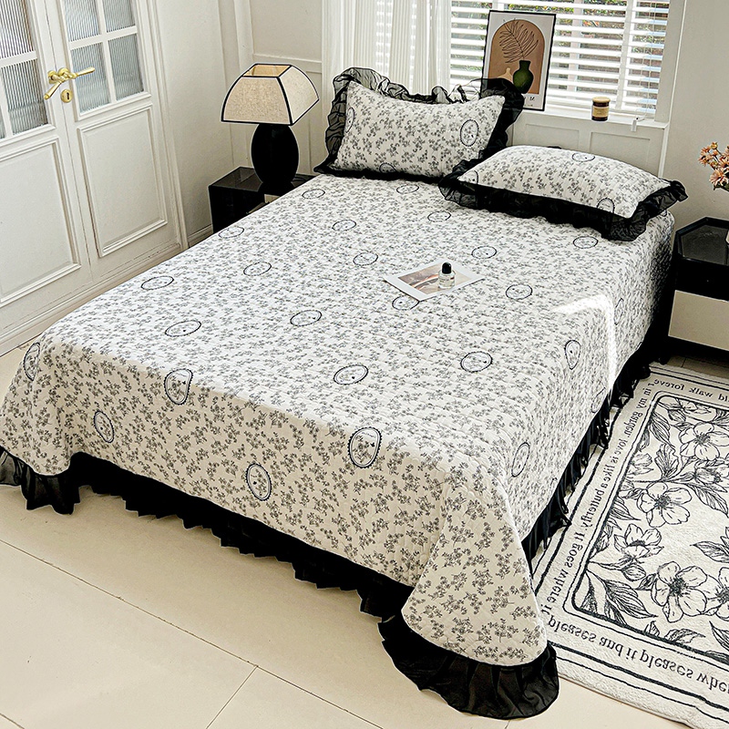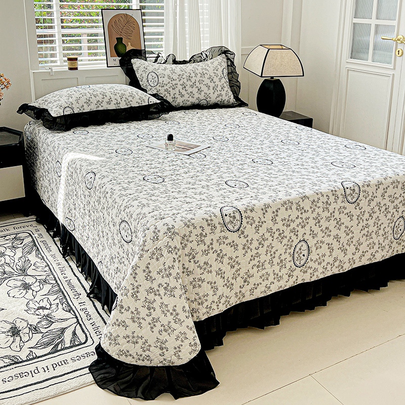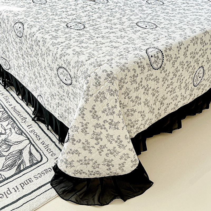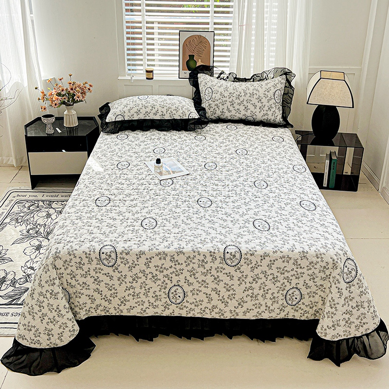 艾橙家纺2025新款法式赫本风水洗棉印花雪纺花边单床盖 澜音花香