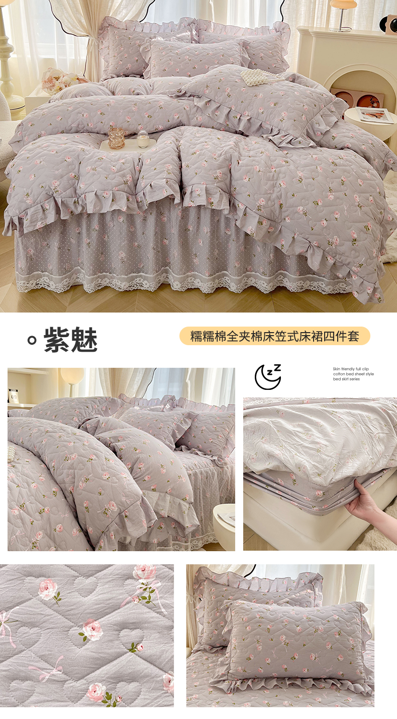 宜凡家纺 2025新款糯糯棉全夹棉床笠式床裙四件套 紫魅