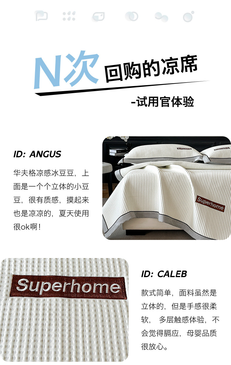 商品名称:笙意家纺 2025新款A类PE华夫格豆豆凉感软席-雅克系列 雅克-淡雅灰