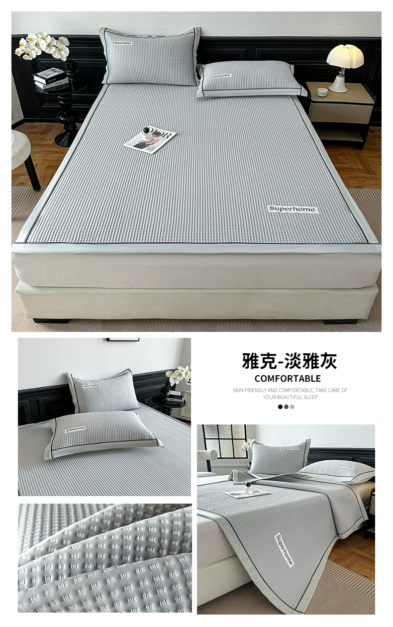 笙意家纺 2025新款A类PE华夫格豆豆凉感软席-雅克系列 雅克-淡雅灰