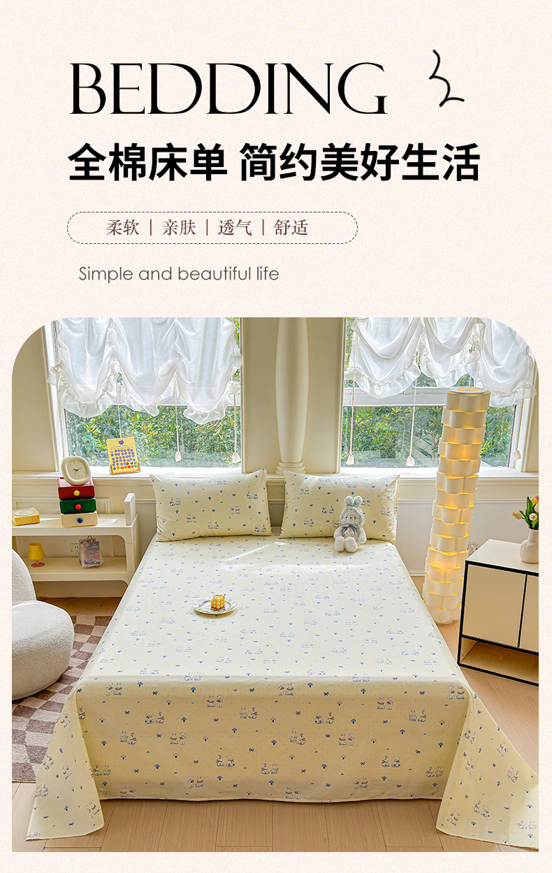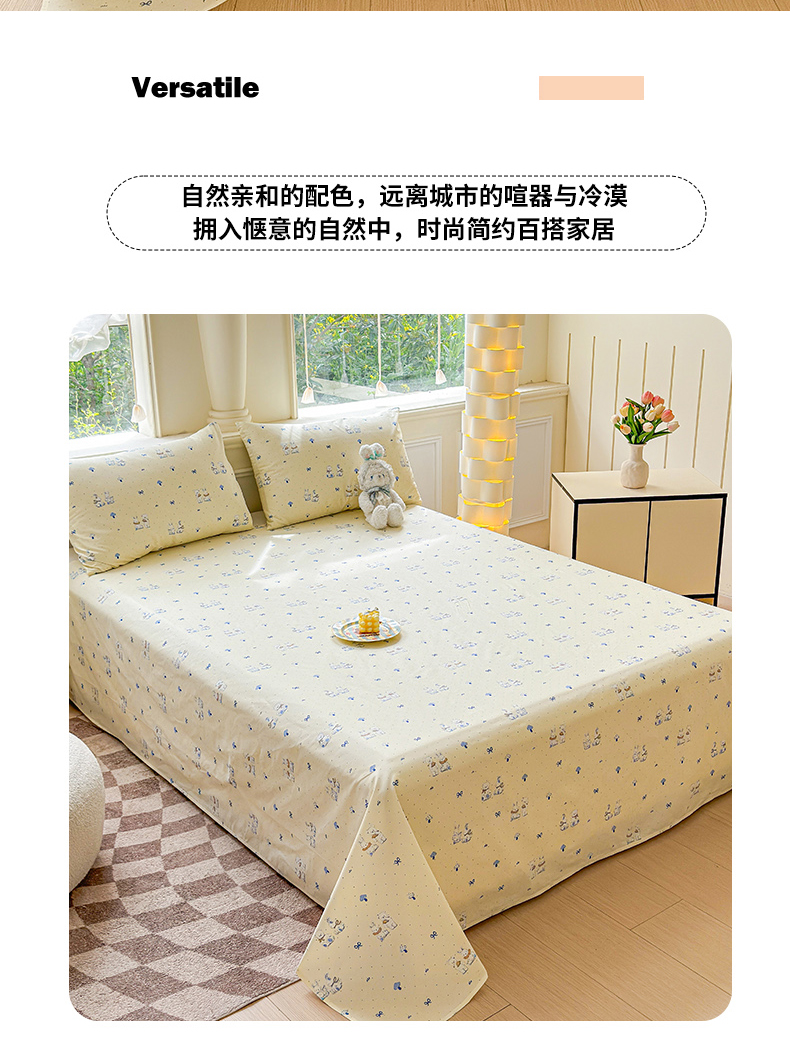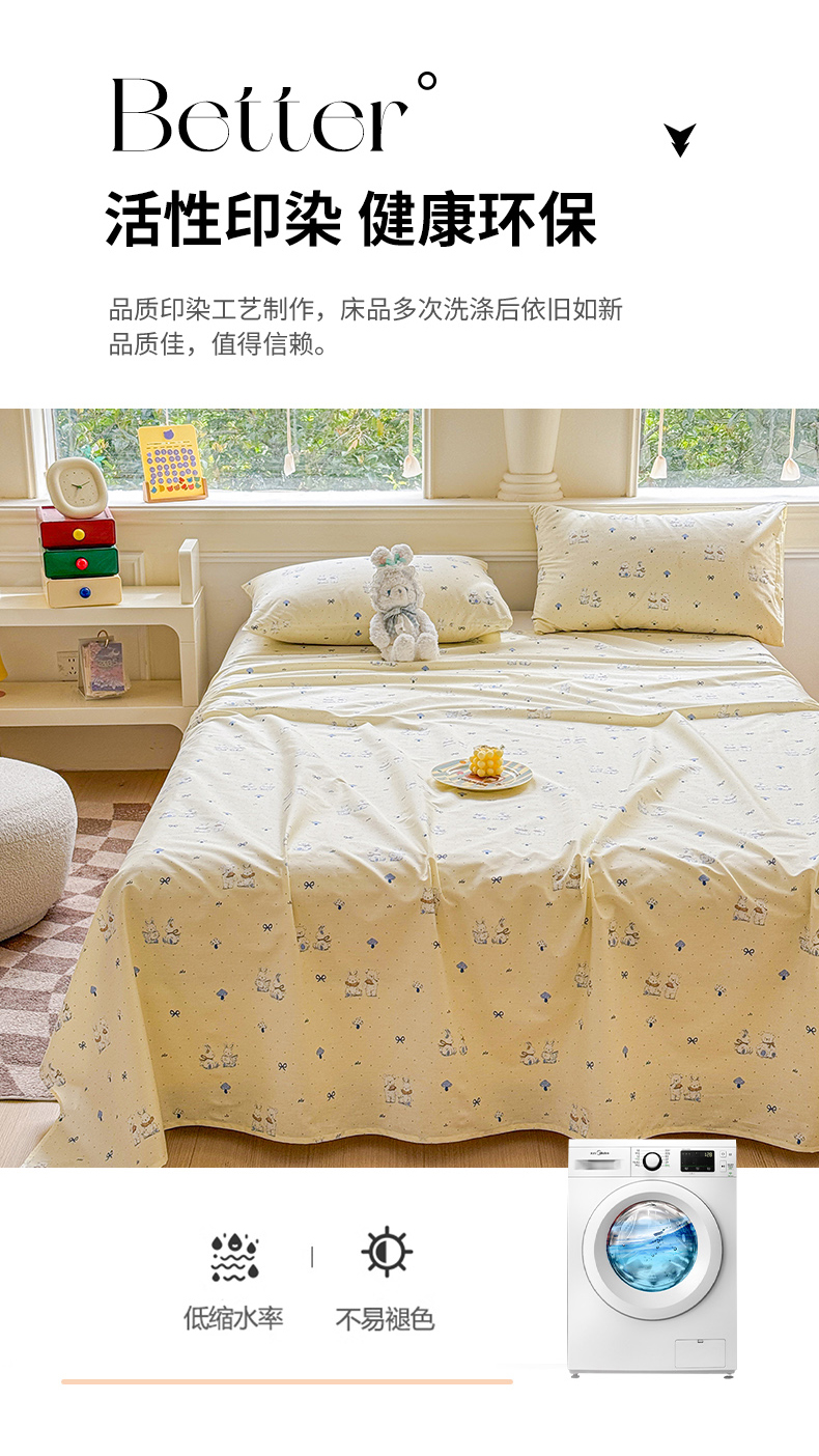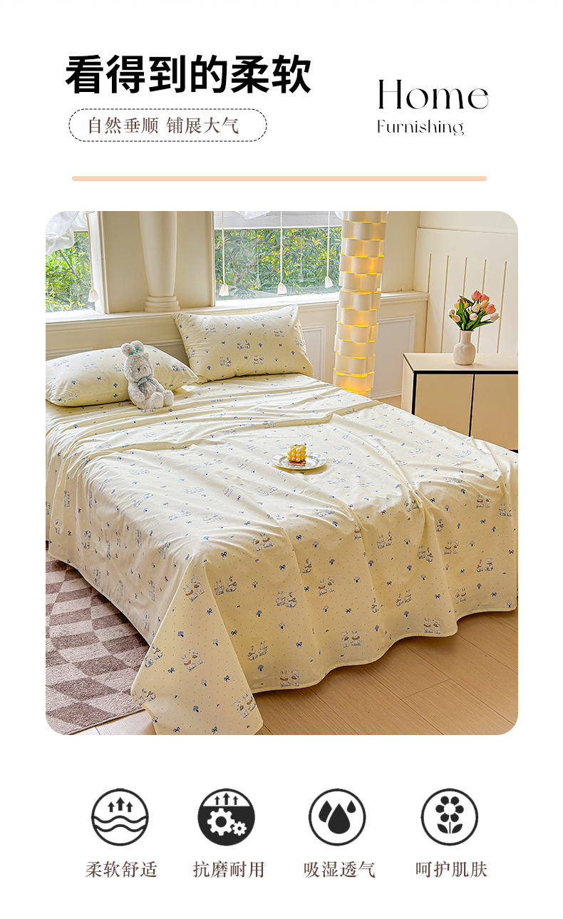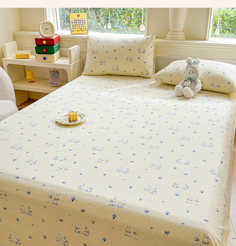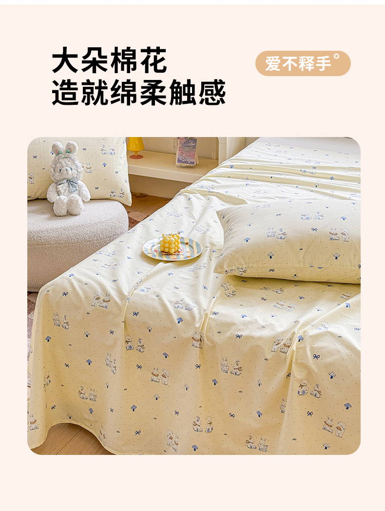 • 91家纺网 家纺一手货源 找家纺 2025新款全棉床单床笠 熊护萌兔  床笠款