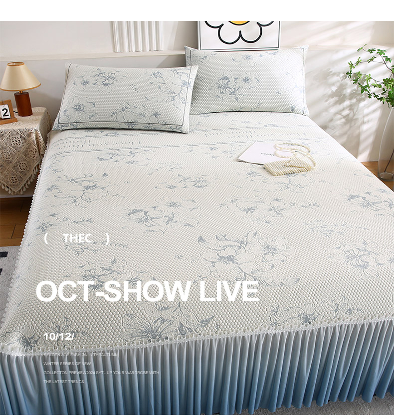 (总)法莱妮2025夏季新款A类真凉感丝提花三明治冰豆豆凉席床裙三件套 ,复古花-粉,复古花-蓝,小花朵-粉,小花朵-灰,小花朵-蓝,小花朵-绿,郁金香 -粉,郁金香 -蓝,郁金香-灰