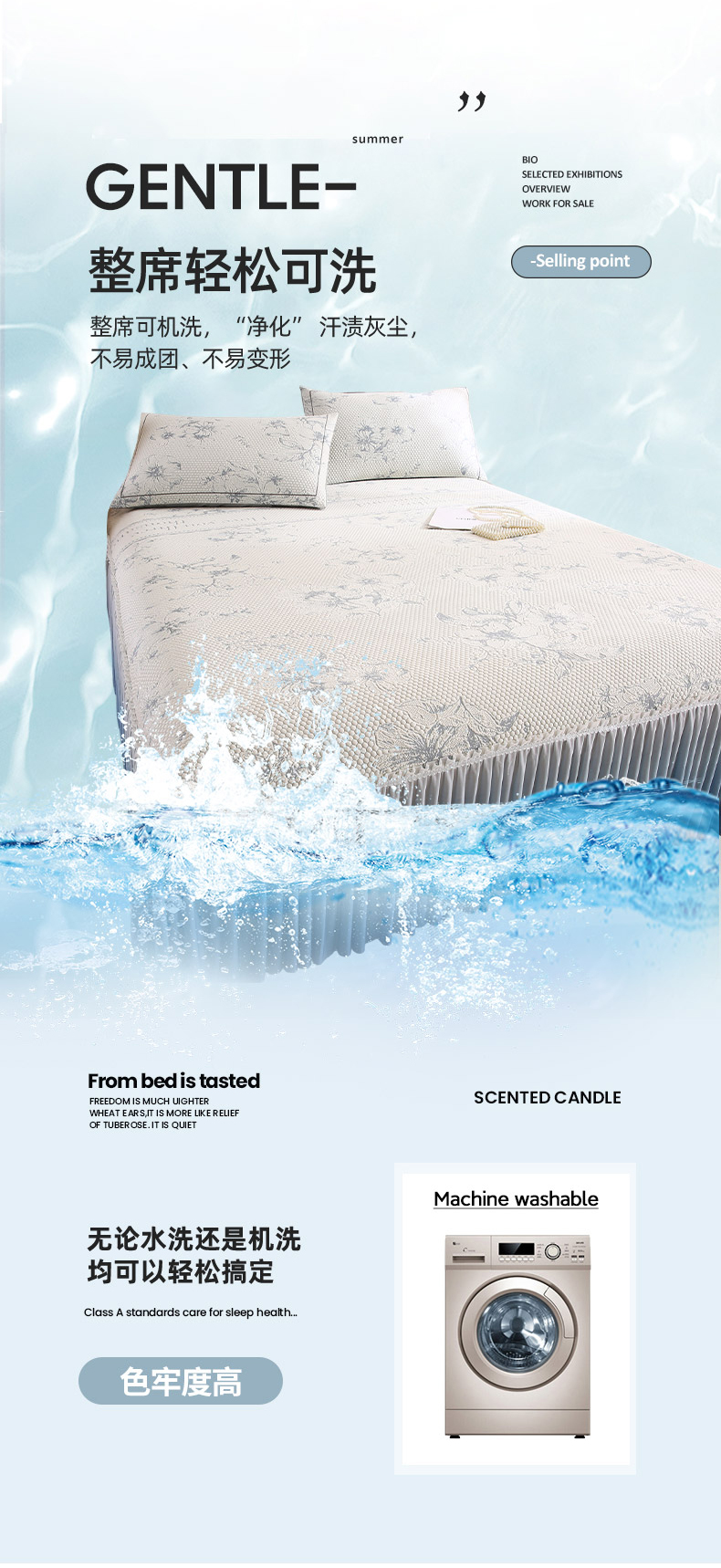 (总)法莱妮 2025夏季新款A类真凉感丝提花加厚三明治冰豆豆凉席-叶韵系列 ,叶韵-粉,叶韵-蓝,叶韵-绿,叶韵-浅灰,叶韵-深灰