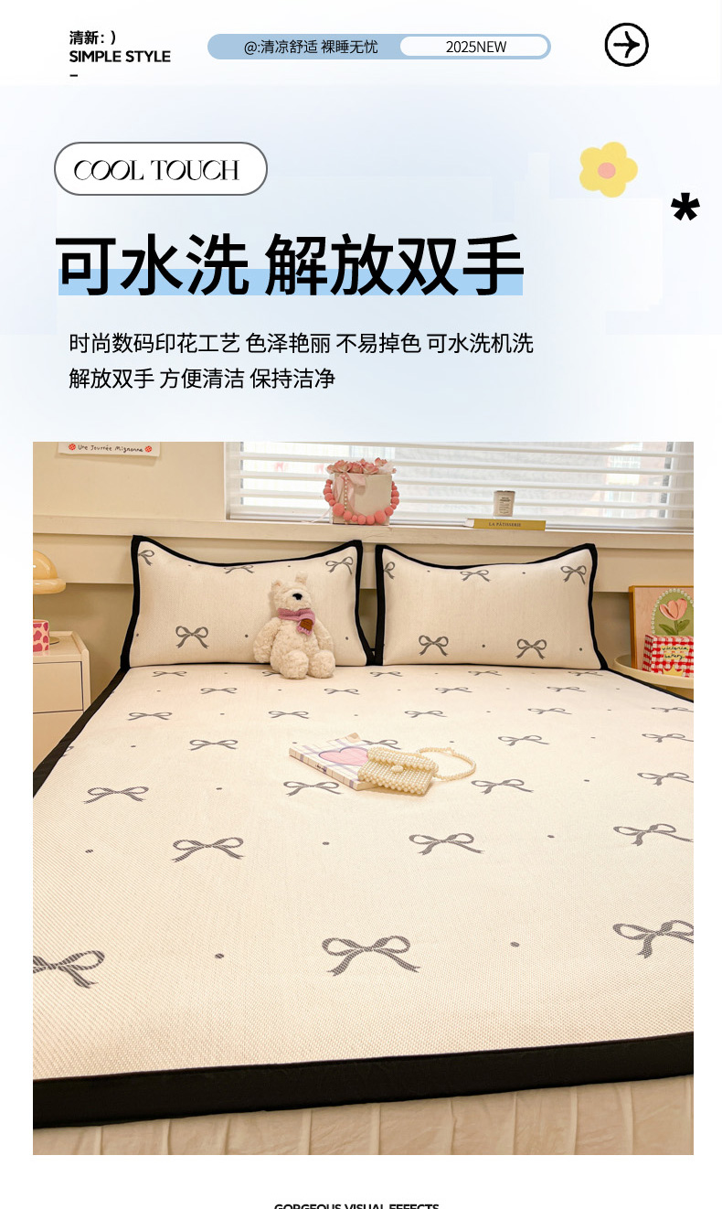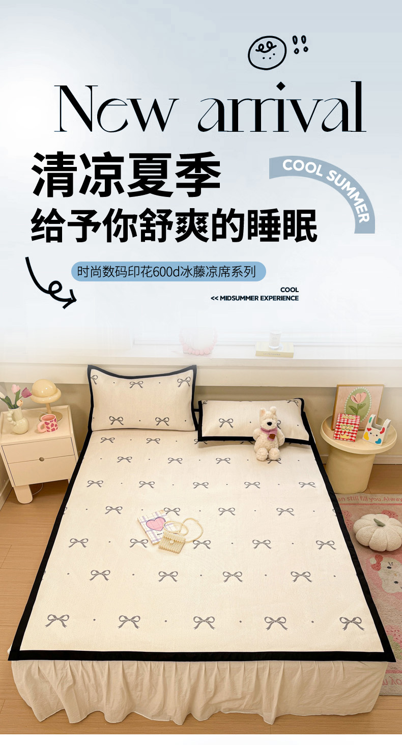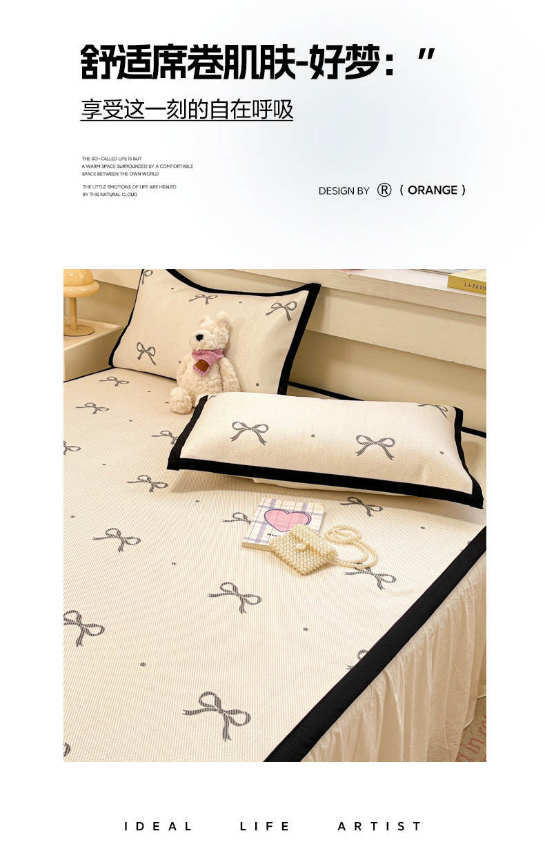 慕澄家纺 2025新款小清新印花真冰藤系列凉席床席款 床席-波点蝴蝶结