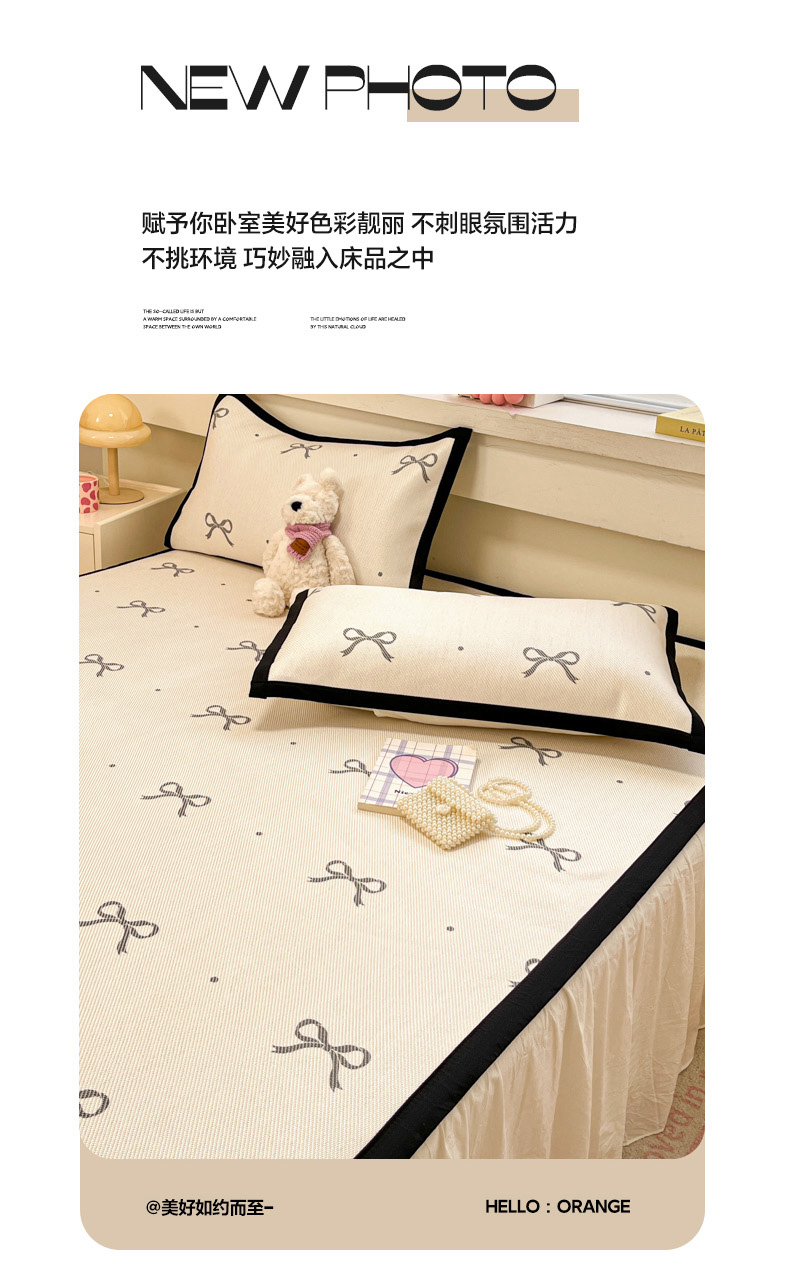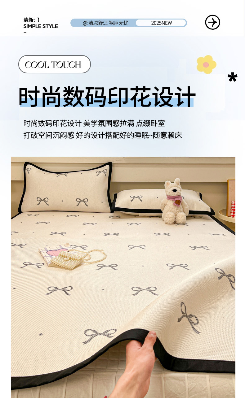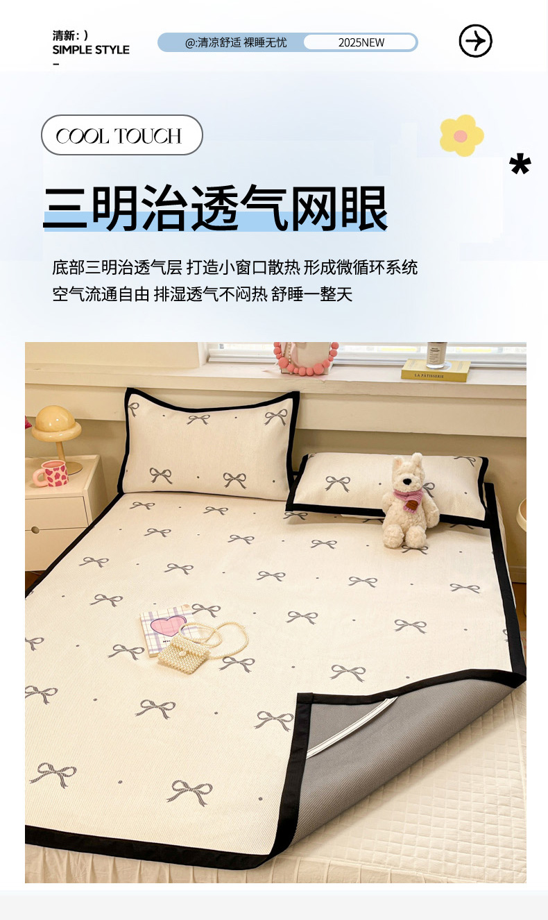 慕澄家纺 2025新款小清新印花真冰藤系列凉席床席款 床席-波点蝴蝶结