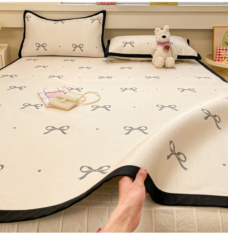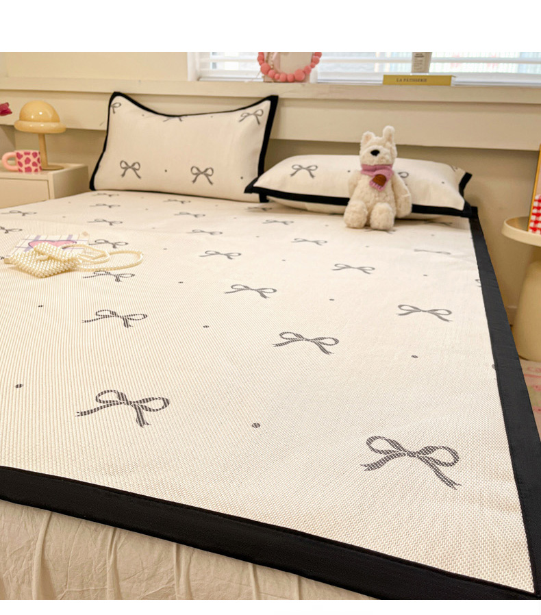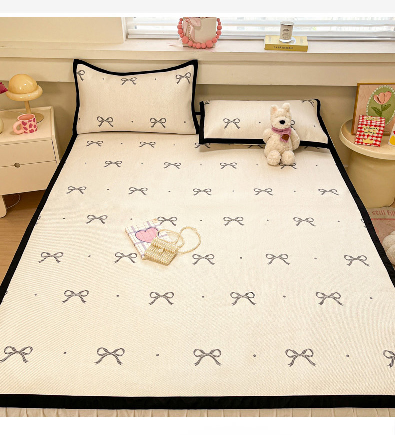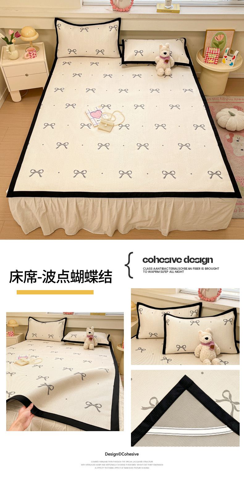 商品名称:慕澄家纺 2025新款小清新印花真冰藤系列凉席床席款 床席-波点蝴蝶结