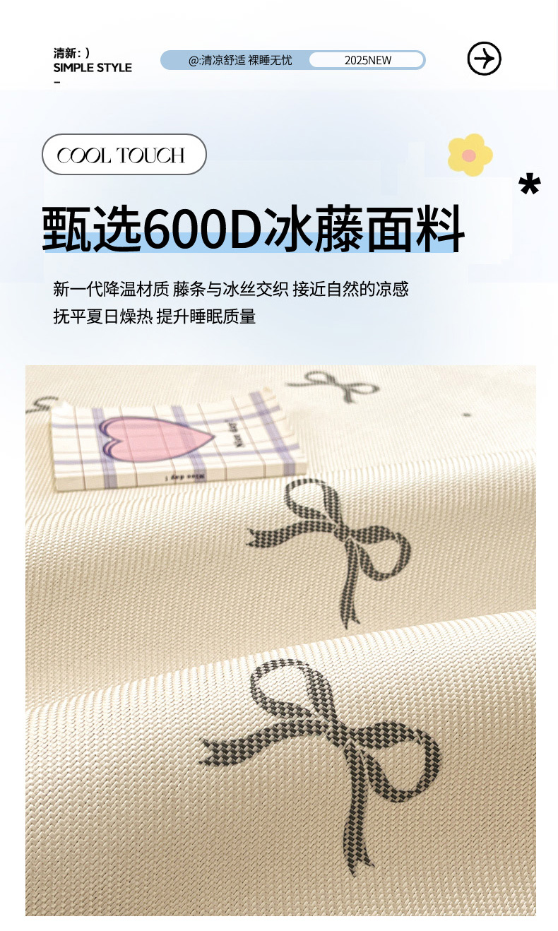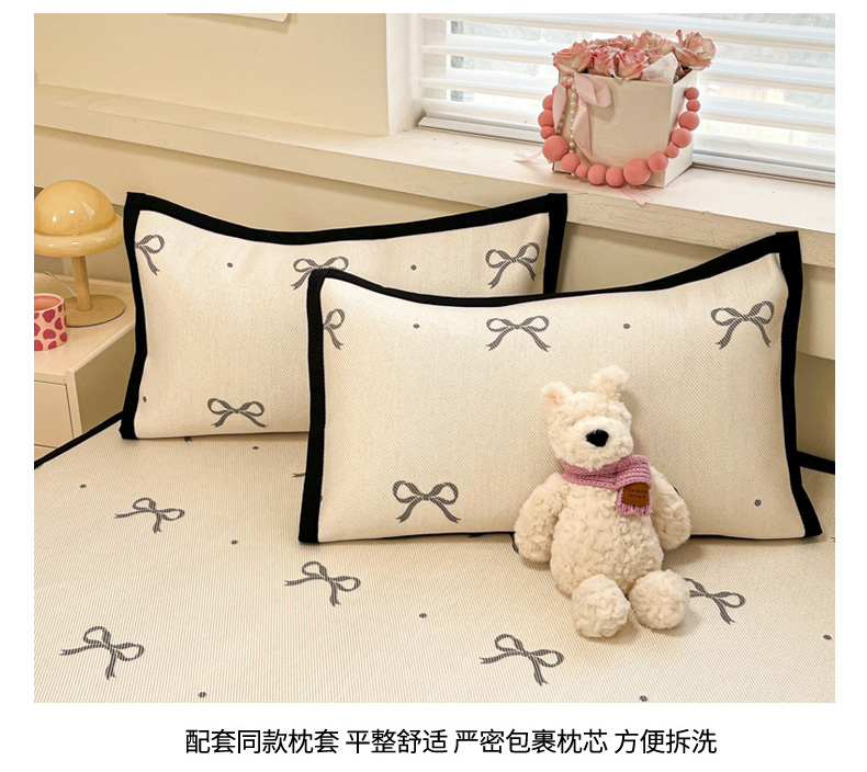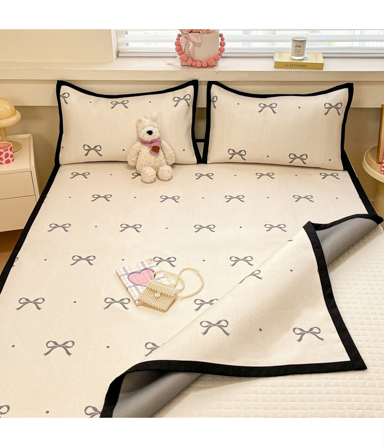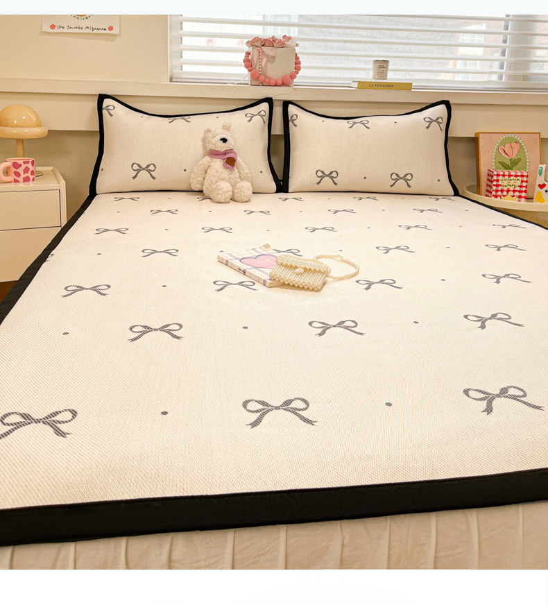 商品名称:慕澄家纺 2025新款小清新印花真冰藤系列凉席床席款 床席-波点蝴蝶结