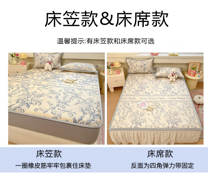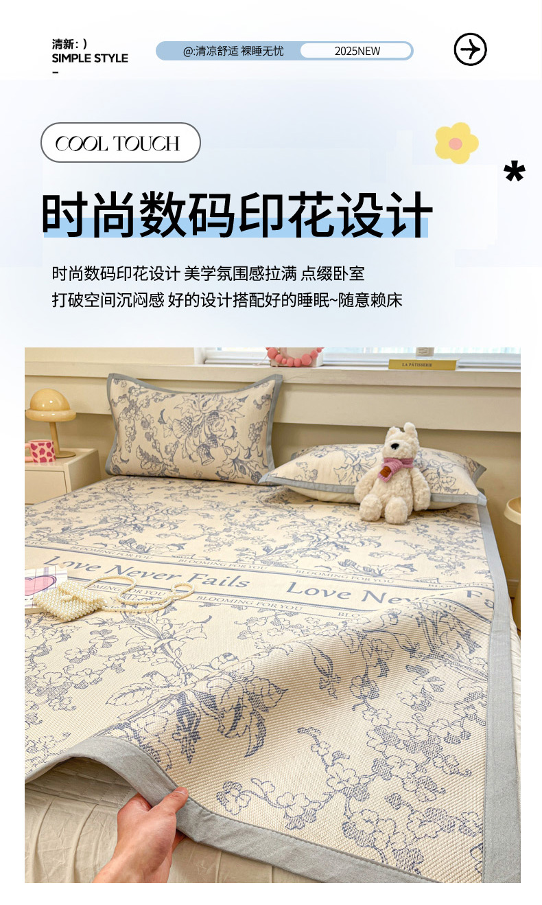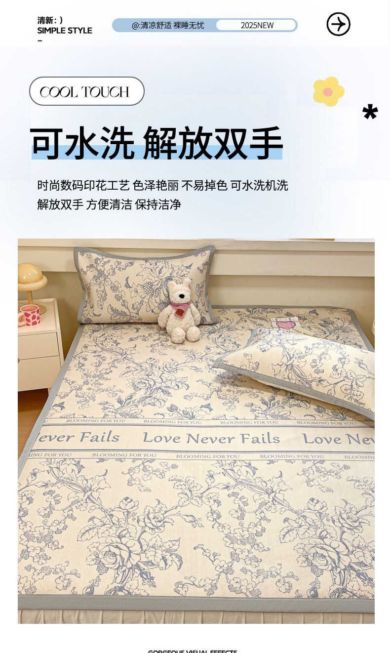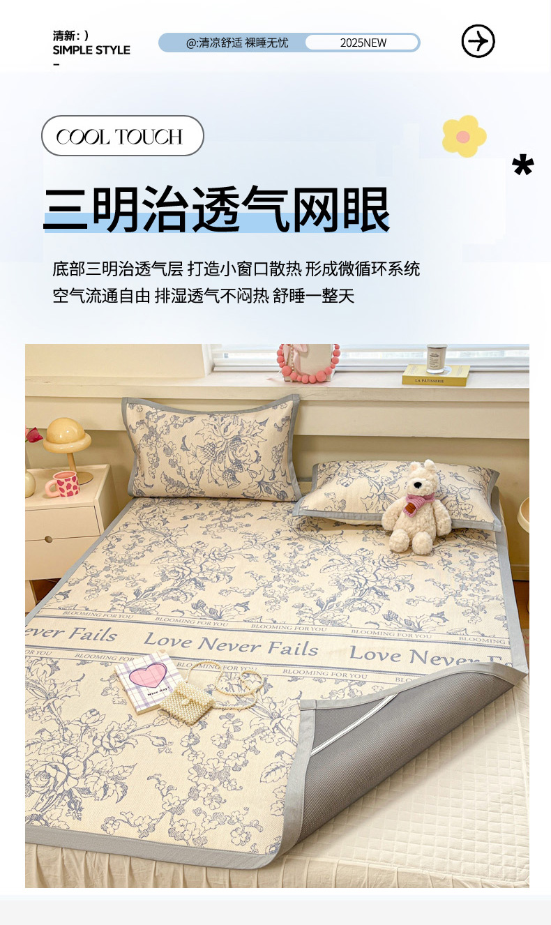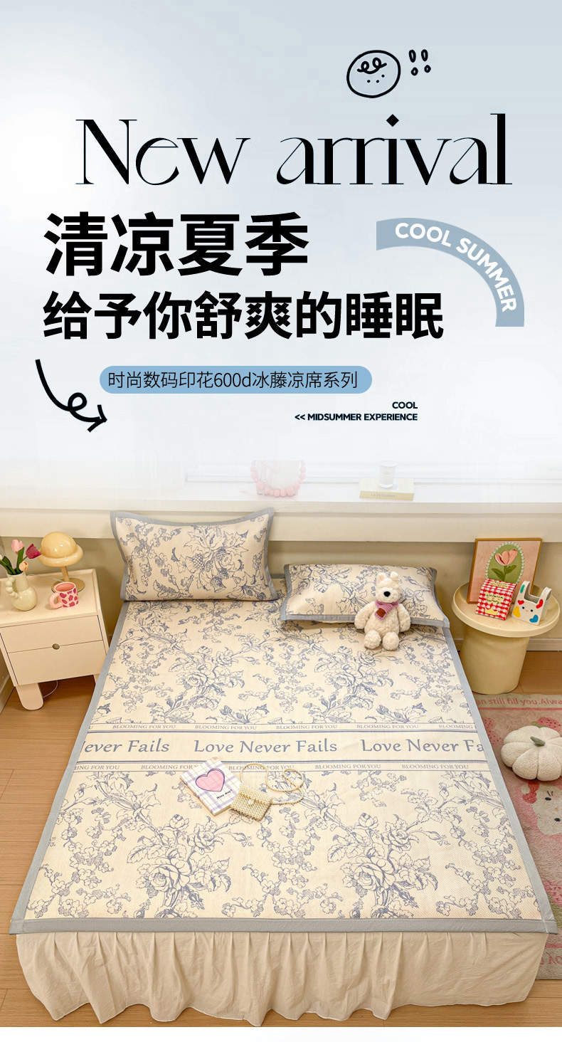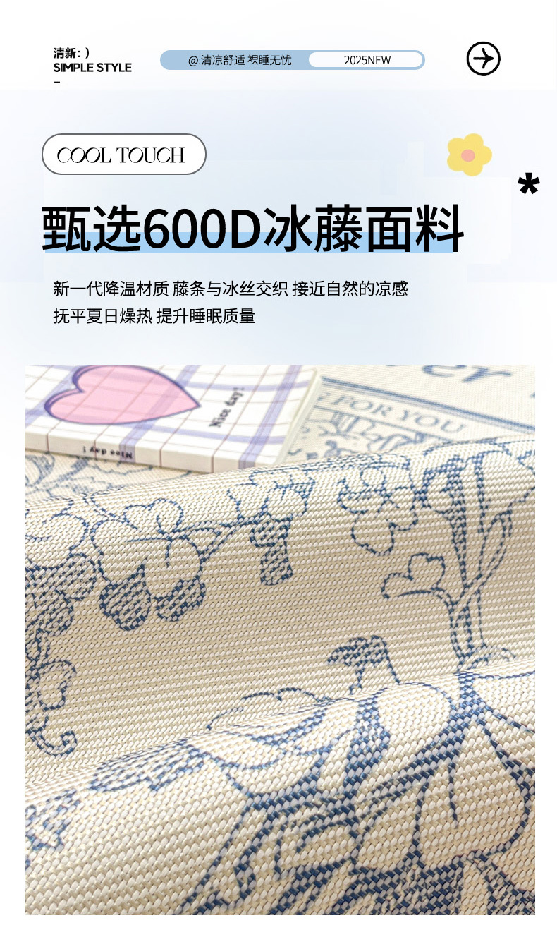 慕澄家纺 2025新款小清新印花真冰藤系列凉席床席款 床席-洛克庄园