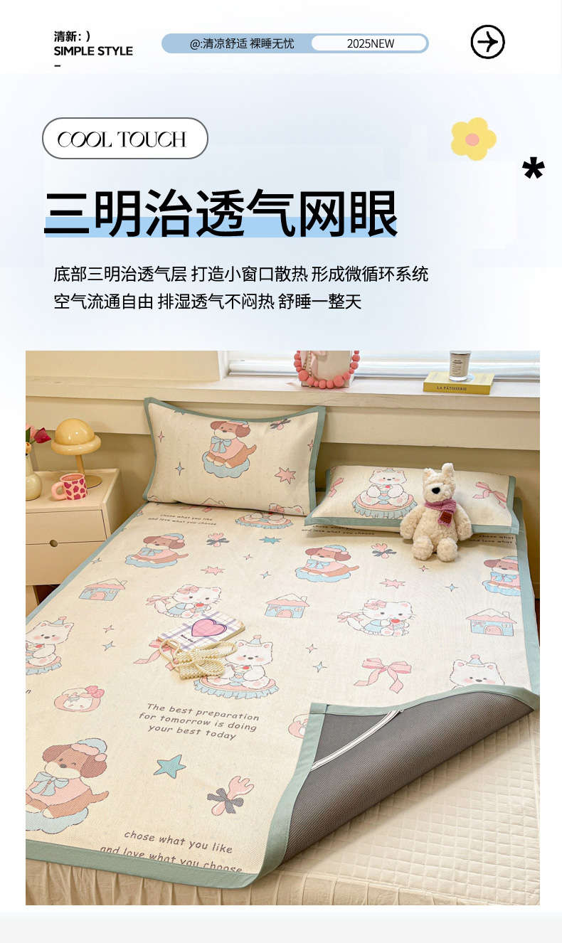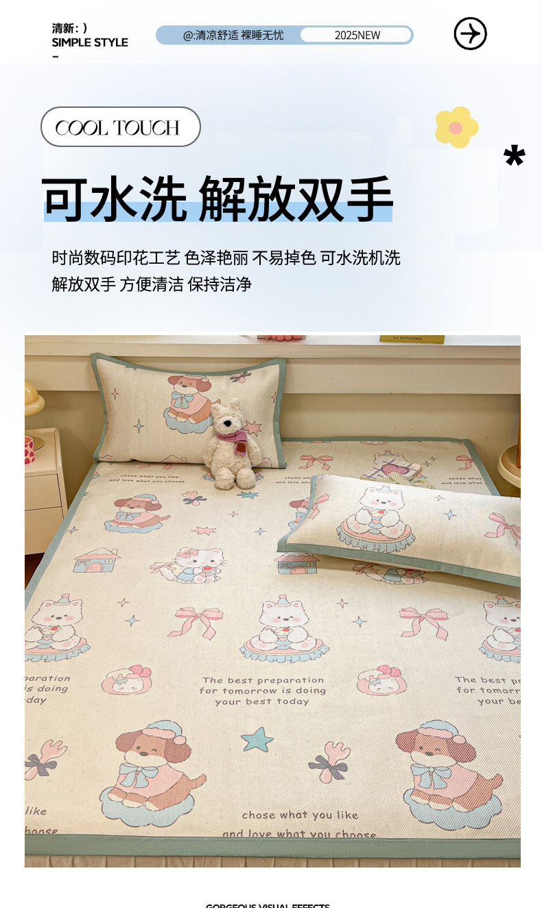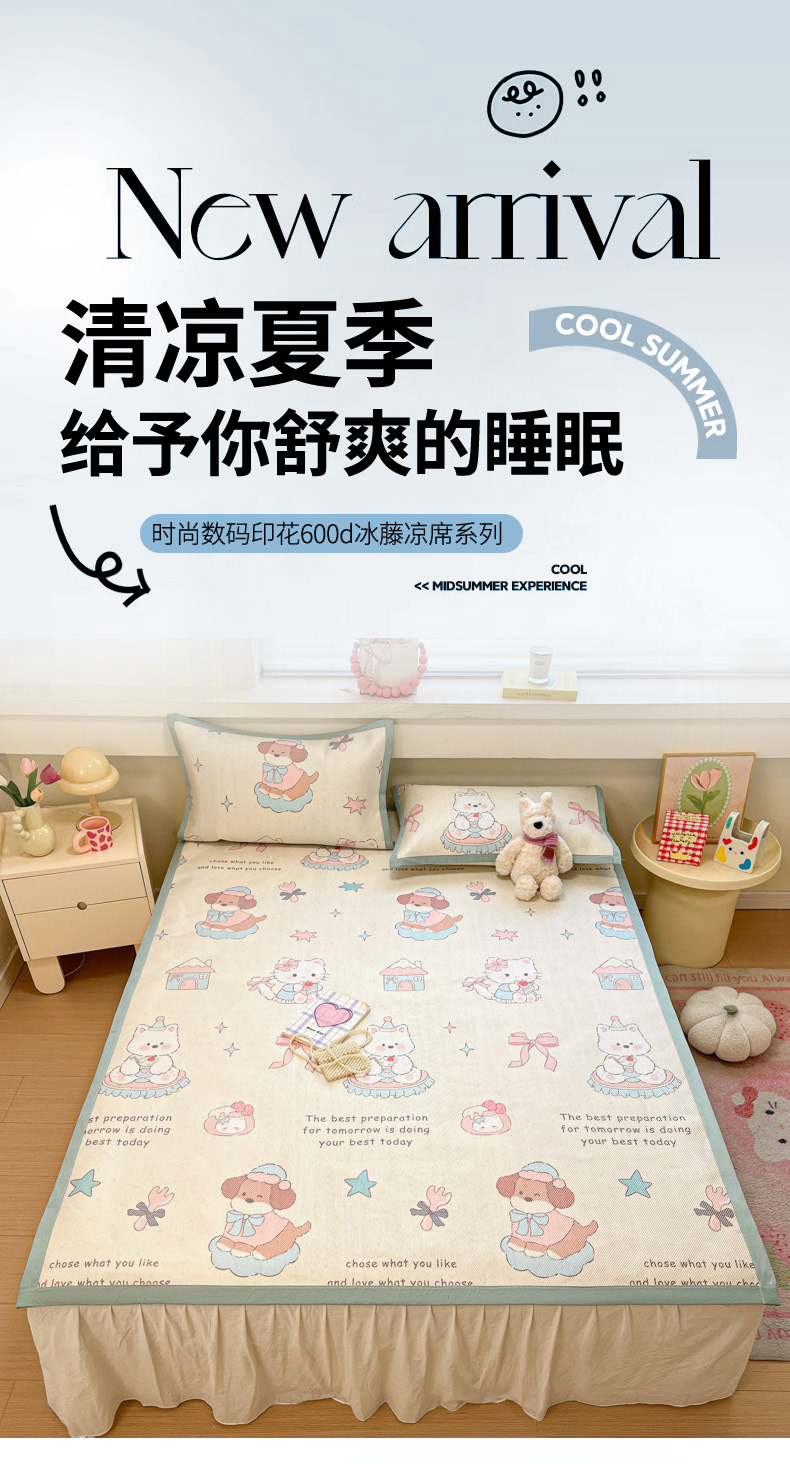 商品名称:慕澄家纺 2025新款小清新印花真冰藤系列凉席床席款 床席-游园会