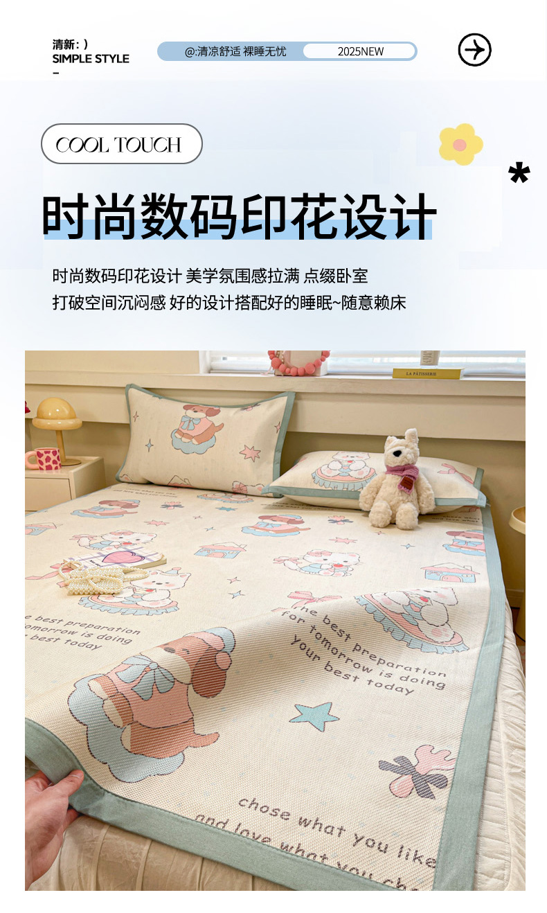 慕澄家纺 2025新款小清新印花真冰藤系列凉席床席款 床席-游园会