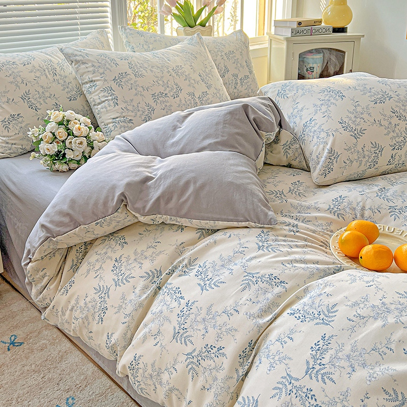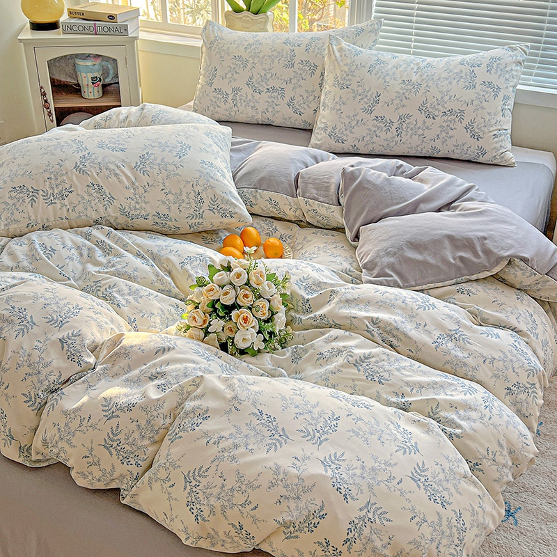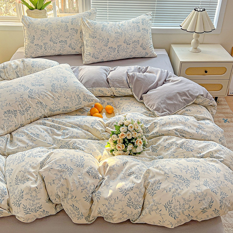 当前位置: 91家纺网 > 商品网购 > 床品套件 > 四件套 > 双层纱四件套 > 2025水洗棉双层纱简约风ins风小碎花被套床单款床笠款三四件套-单被套 蓝颜