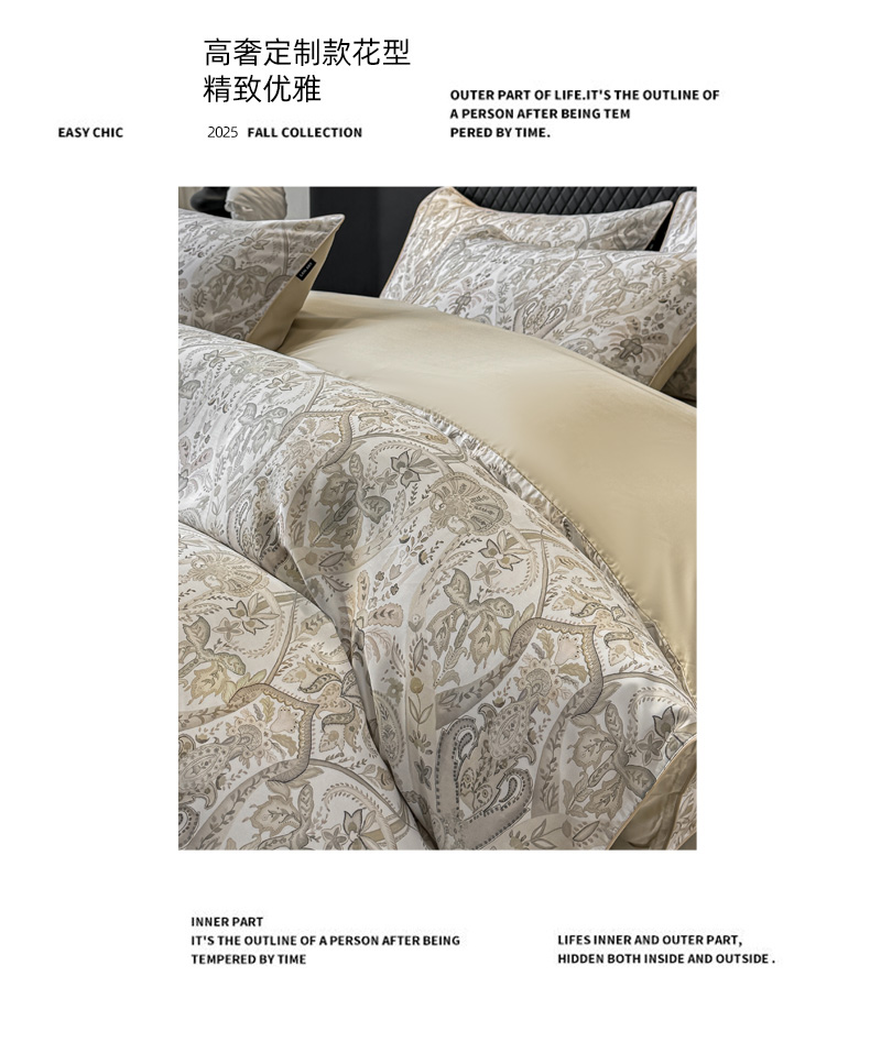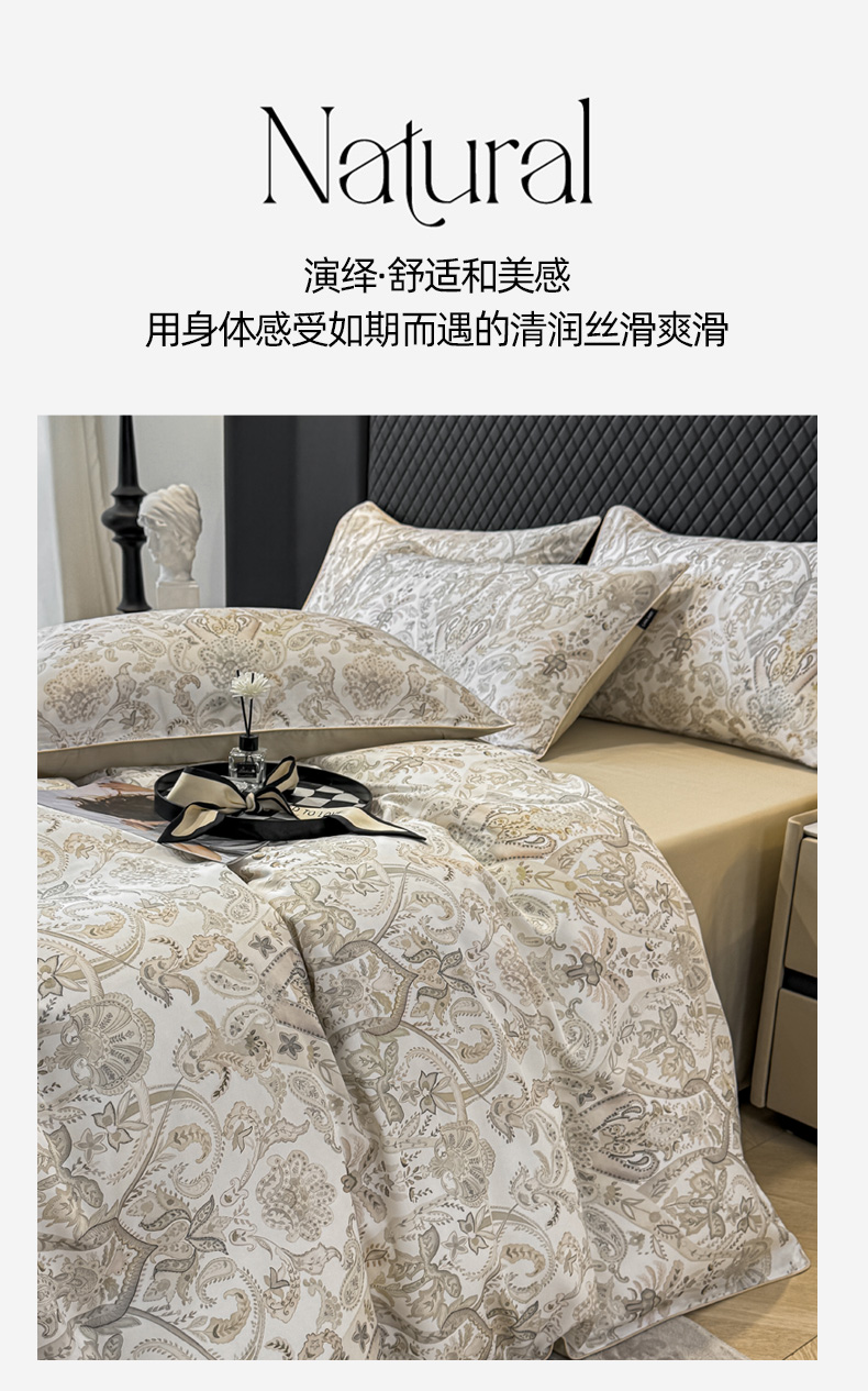 芊寻家居 2025春夏新款50支莱赛尔天丝贡缎数码印花麻绳款四件套高端礼盒 伯爵咖