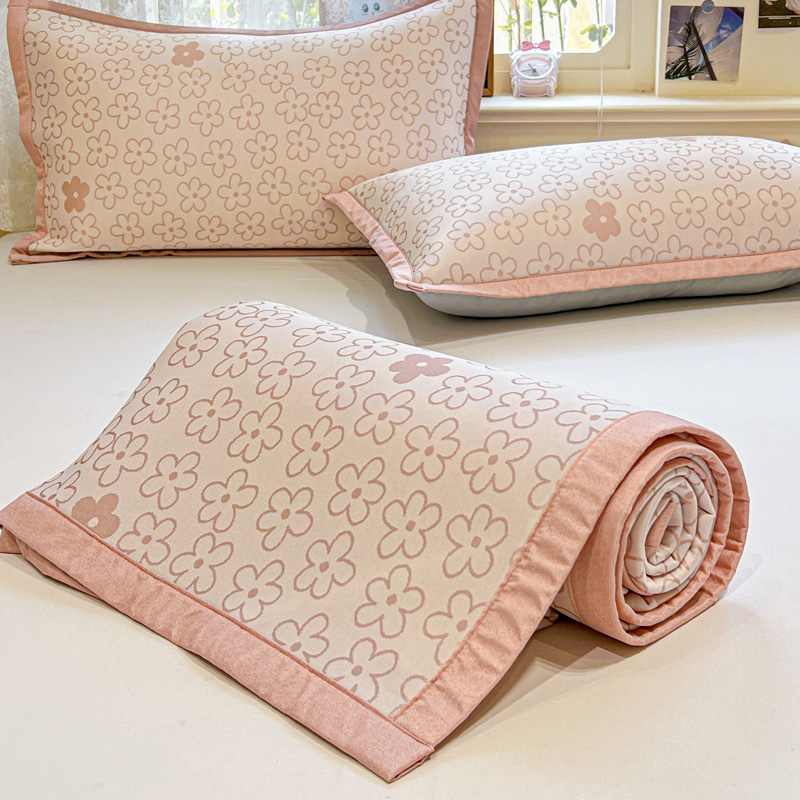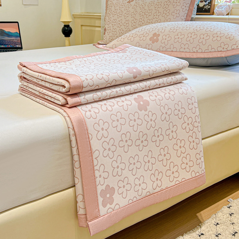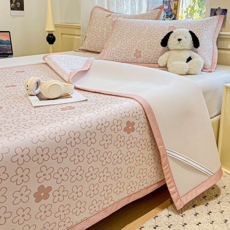 2025新款A类高分子色织提花软凉席(平铺床席款) 小美满粉