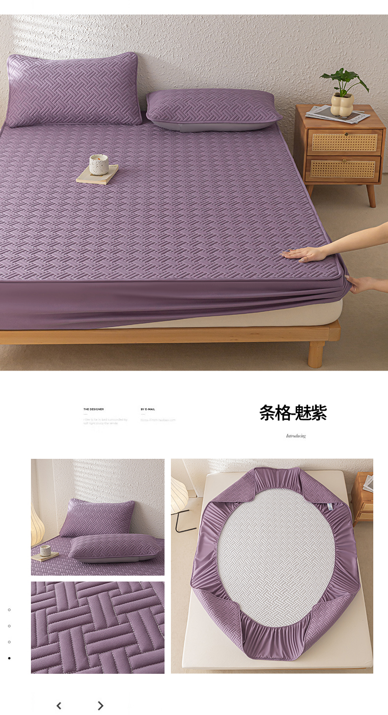 商品名称:欧邦 2025新款四季款纯色水洗棉夹棉床笠床垫保护罩-场景一 条格-魅紫