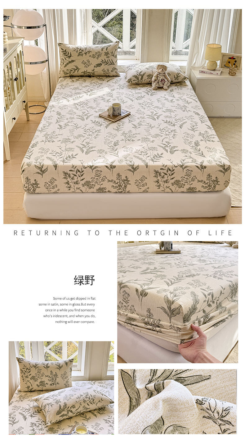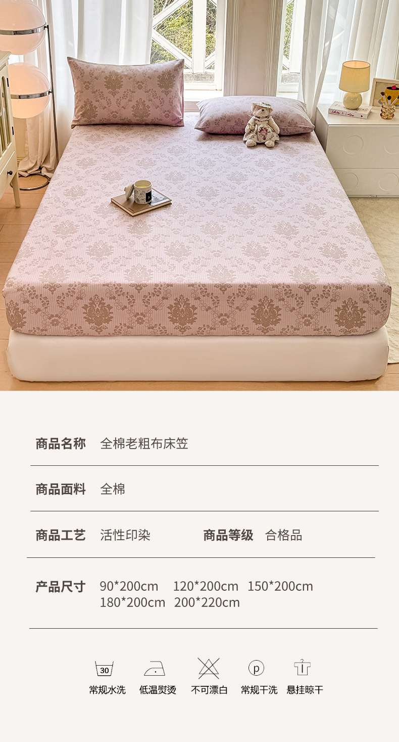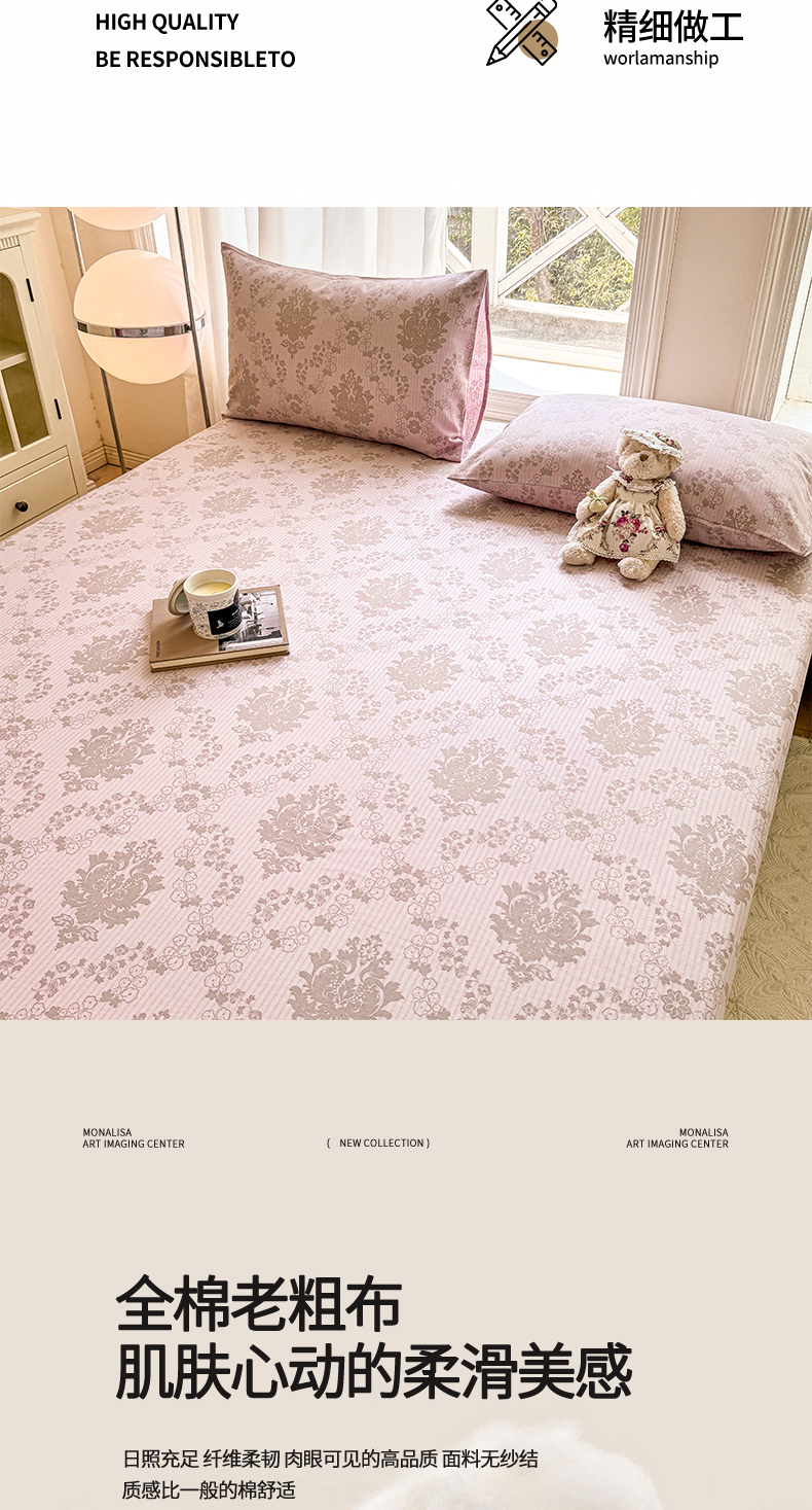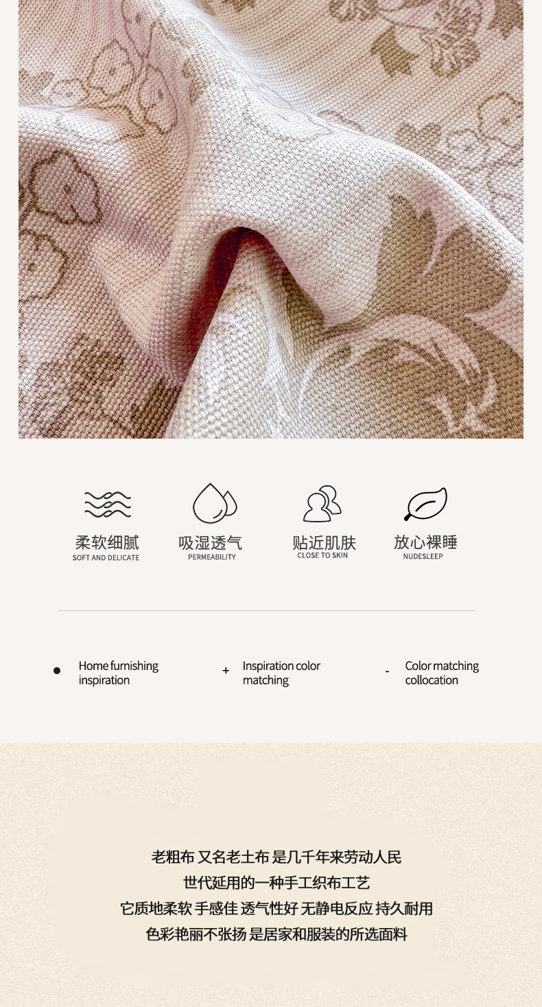 • 91家纺网 家纺一手货源 找家纺 韩巢家纺 2025新款全棉纯棉田园小清新花卉老粗布席子凉席夏季凉席席子床笠款床套 花开富贵-驼