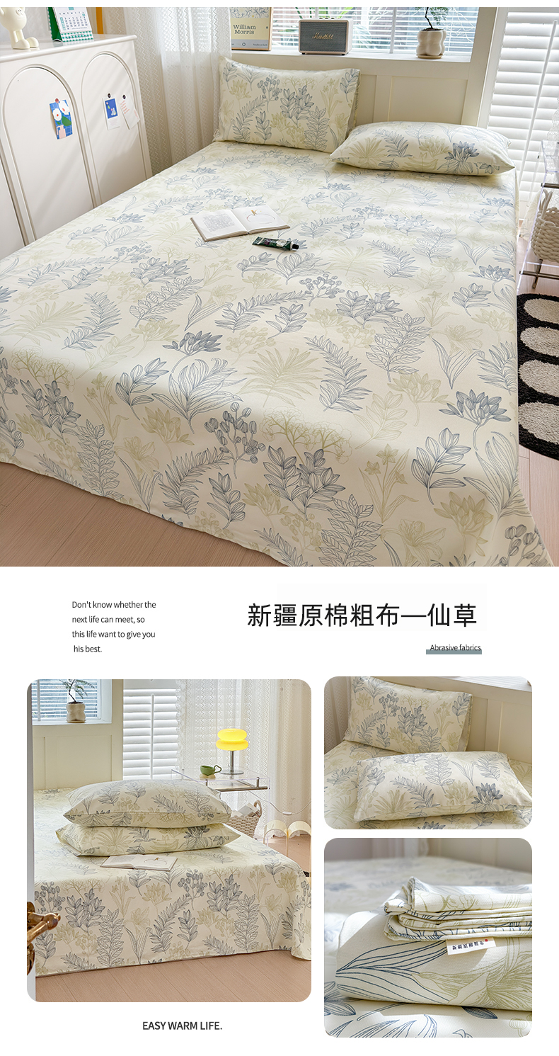 (总)吉象家纺 2024新款老粗布三件套-床笠款,仙草,品格灰,品格绿,墨,悉尼绿,春色,朵朵郁金香,水墨画,漫画家,狗狗乐园,粉玫瑰,繁花,绿格,美乐蒂,花园兔,蓝格