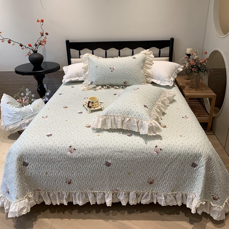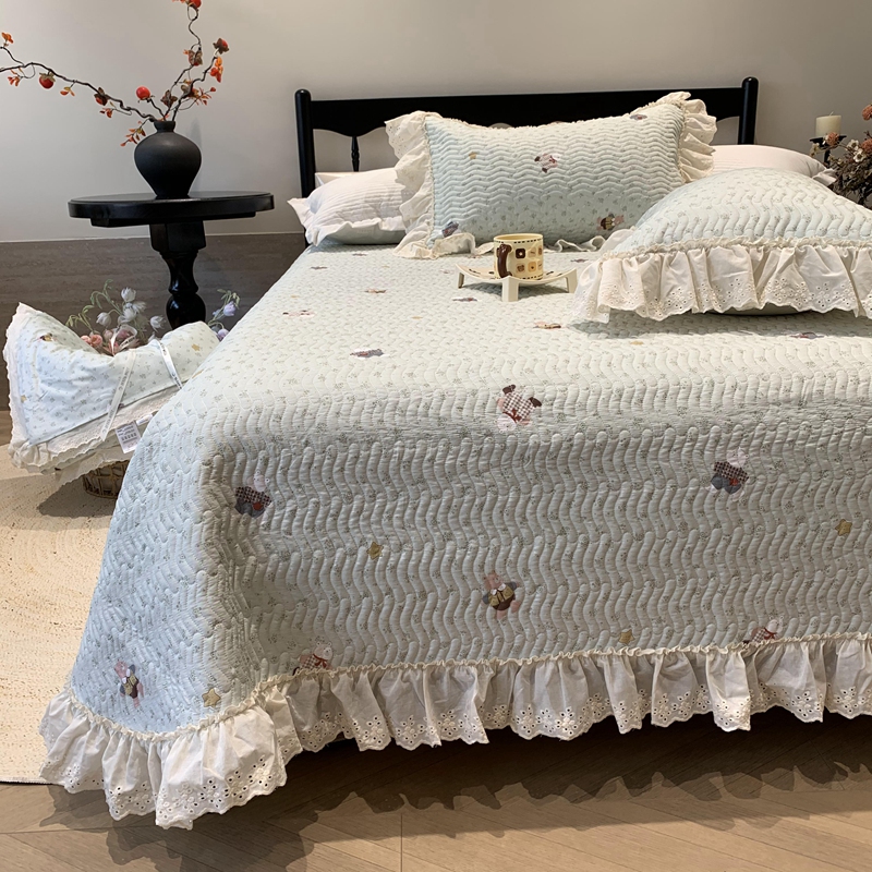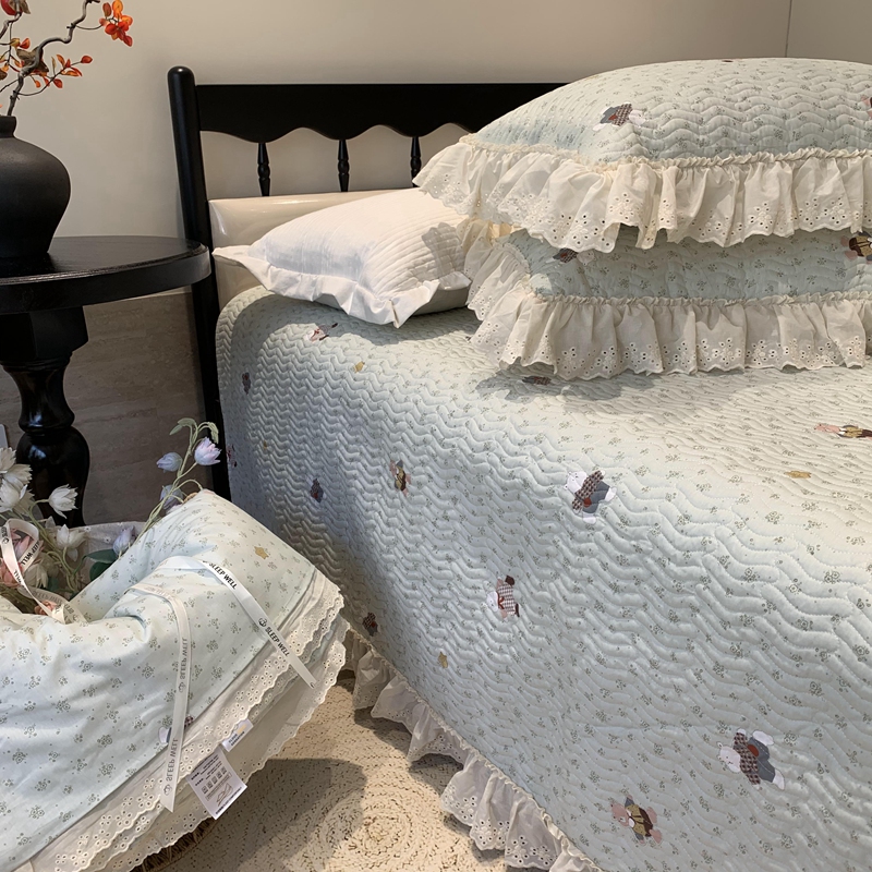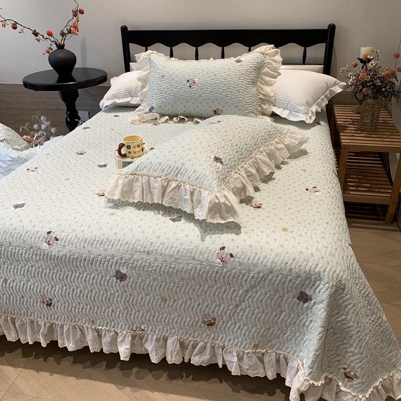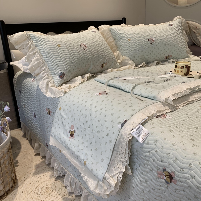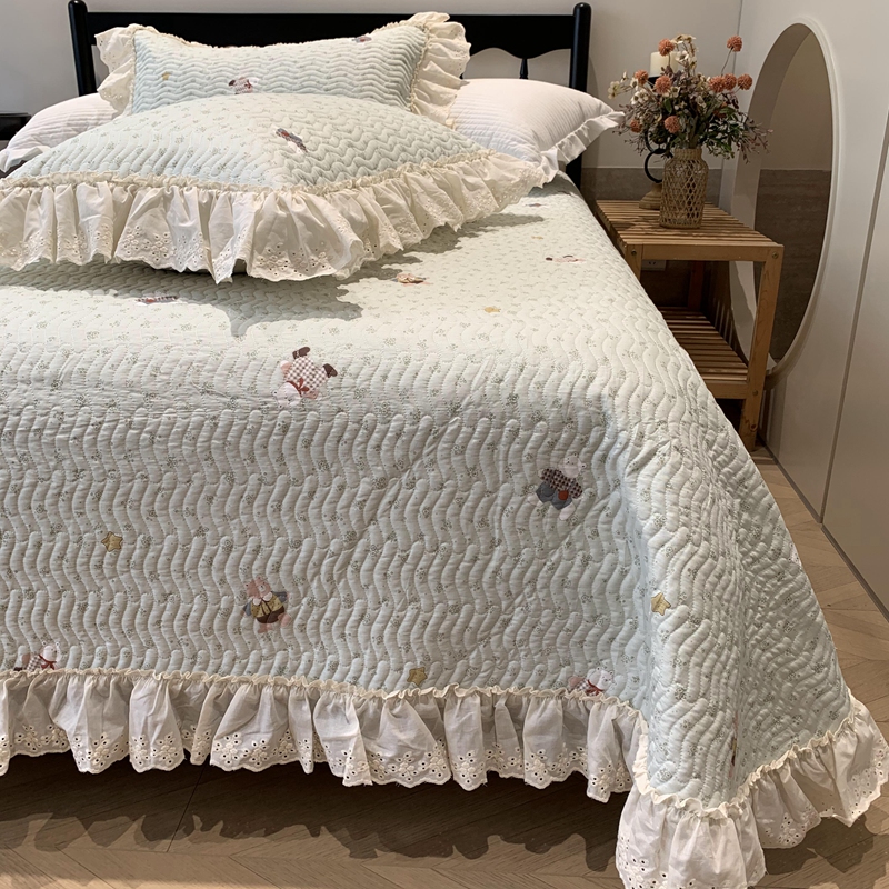 奈萝家纺 2025春夏新款全棉纯棉蕾丝花边款床盖三件套 小花熊