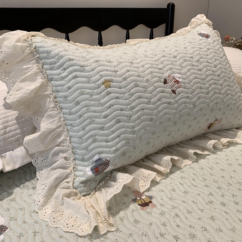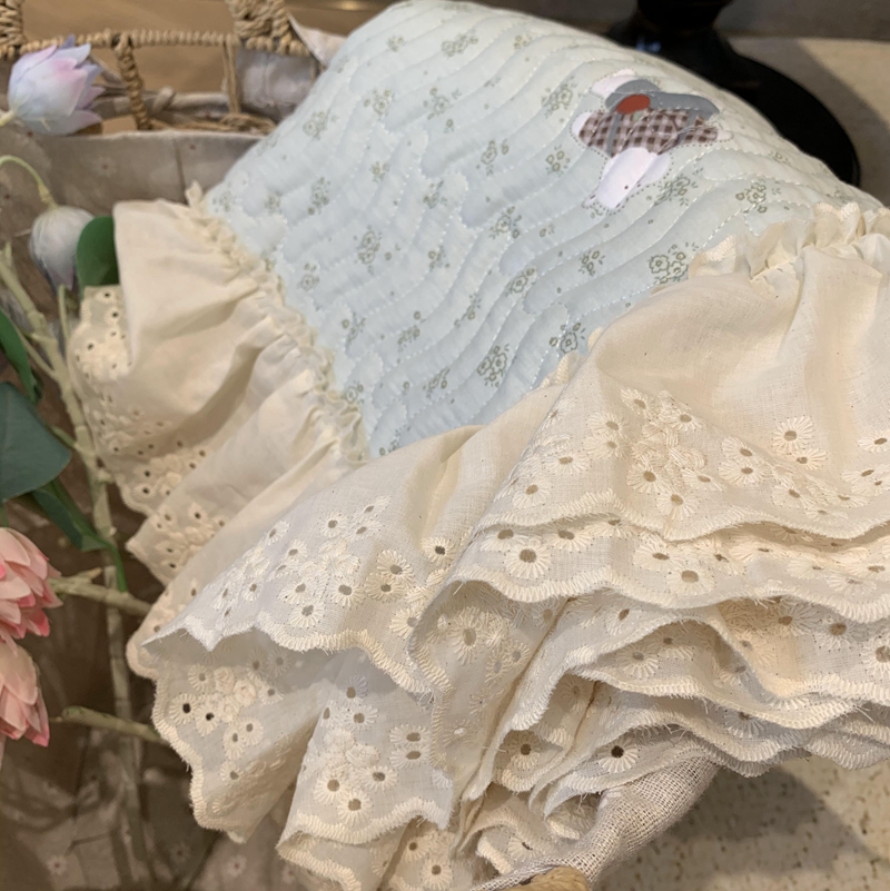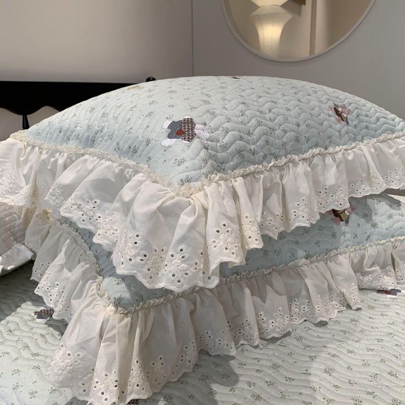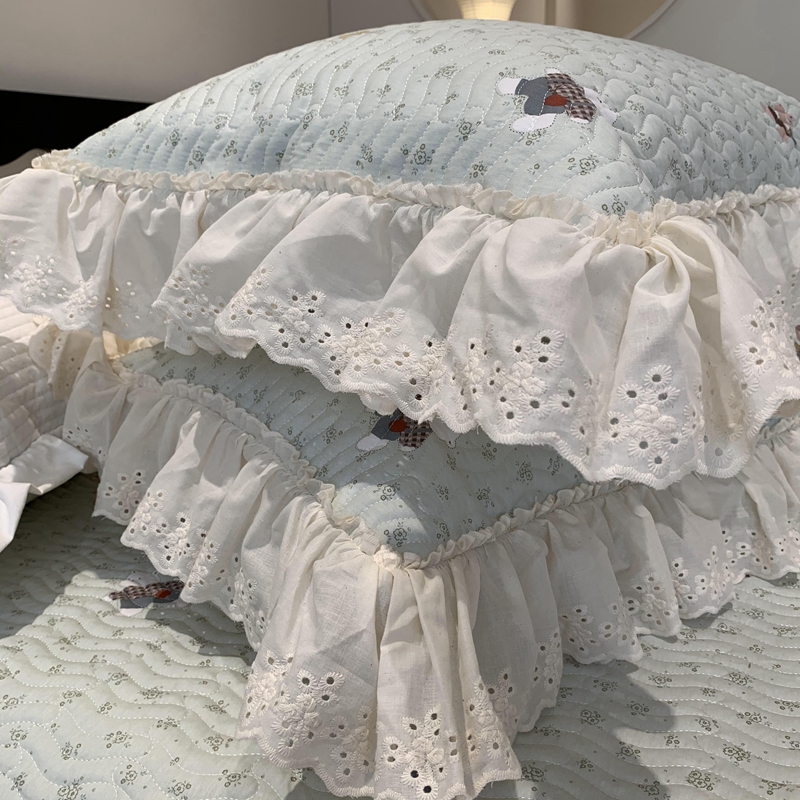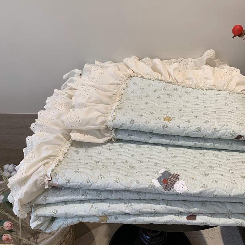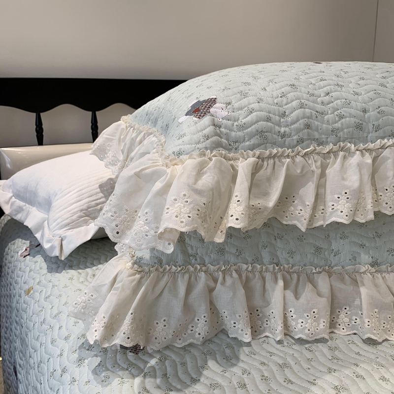 奈萝家纺 2025春夏新款全棉纯棉蕾丝花边款床盖三件套 小花熊