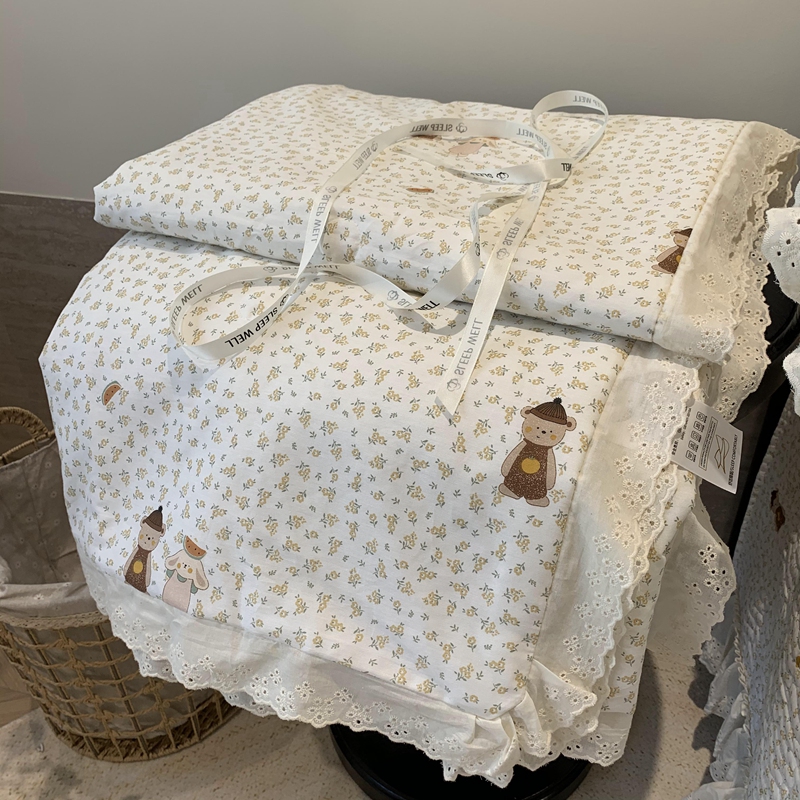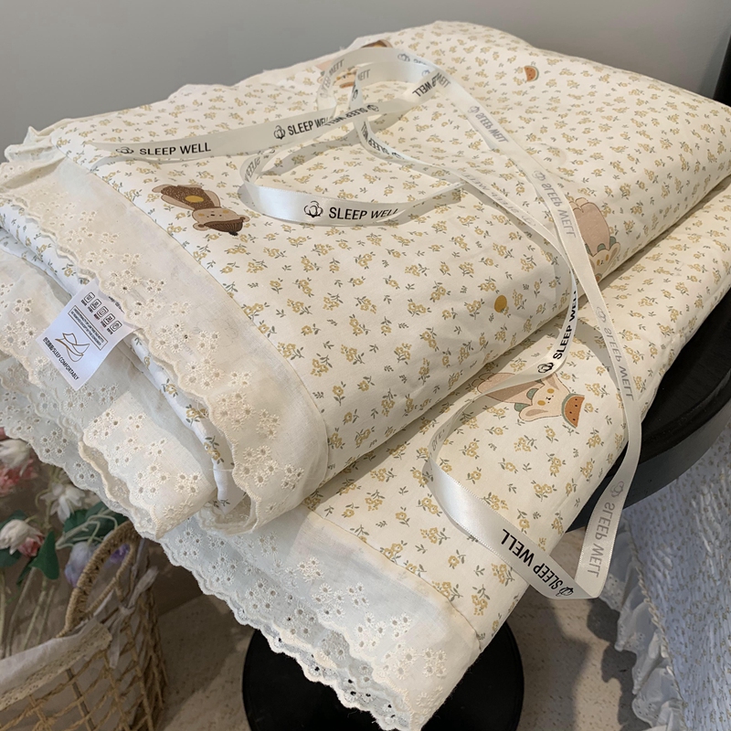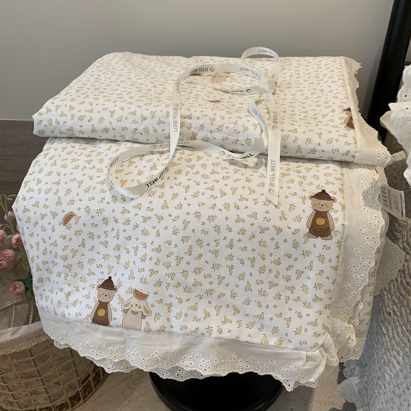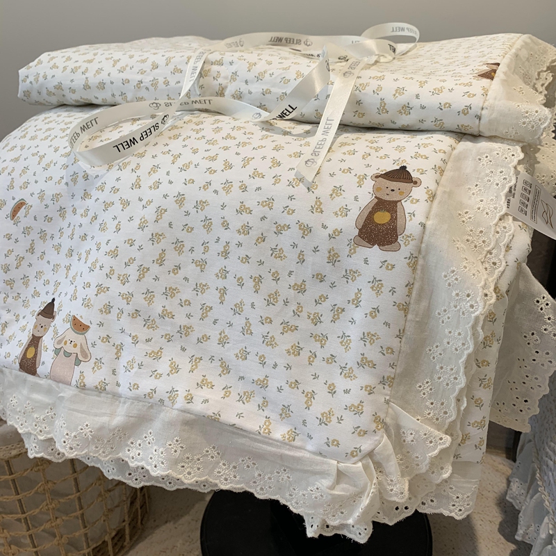 (总)奈萝家纺 2025新款全棉蕾丝花边床盖三件套四件套纯棉花边夏被,呆呆熊,花语绿,花语紫,柠檬,蔷薇,西瓜兔,夏蓝,夏梦,夏之语,小花熊,樱花