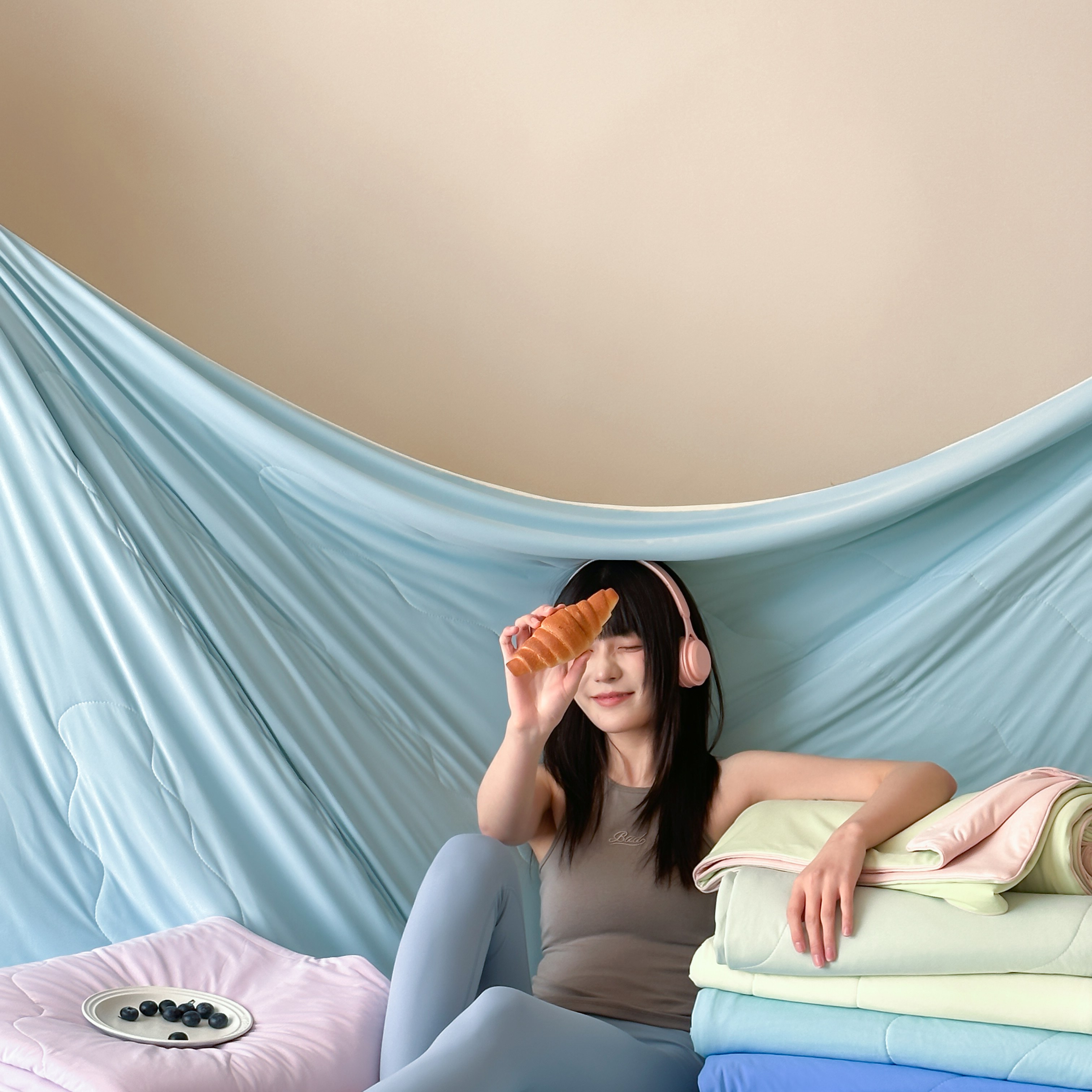 觅糖家纺 2025春夏新款亲肤纯色雪糕夏被夏凉被空调被 奶豆绿
