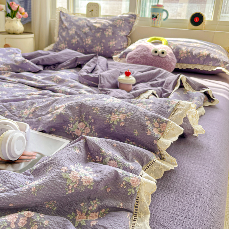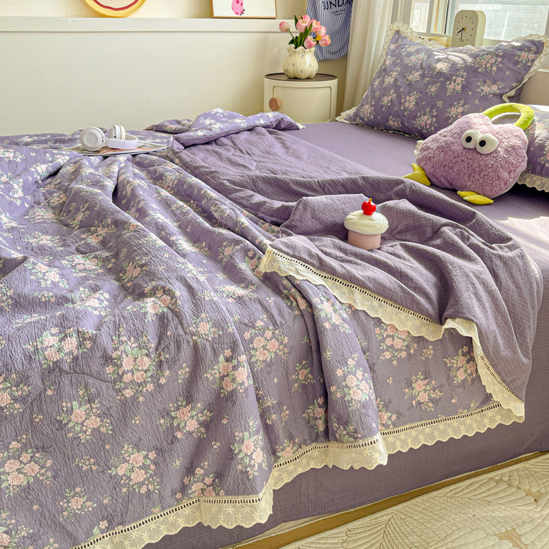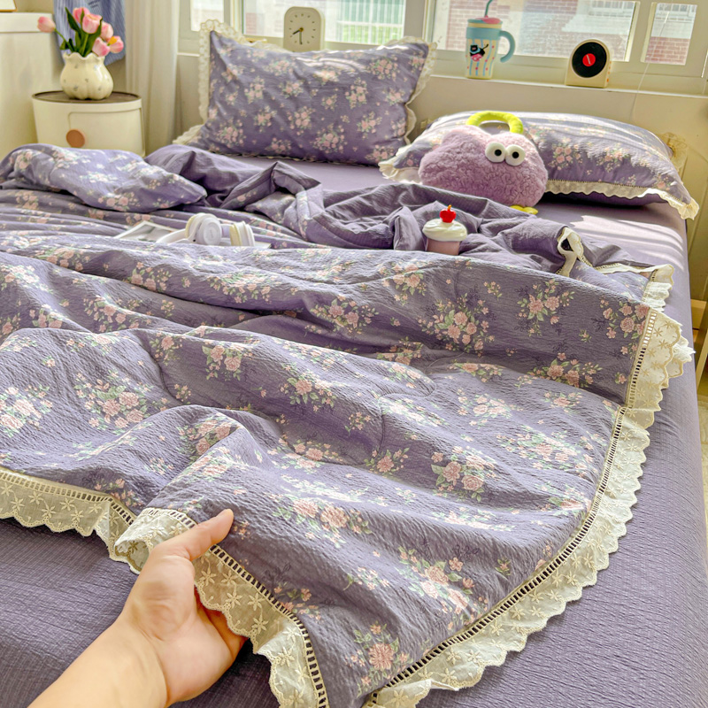 当前位置: 91家纺网 > 商品网购 > 床品套件 > 四件套 > 夏被四件套 > 恋之语 2025春夏新款云感全棉纯棉花边款夏被夏凉被空调被四件套套件 春天里