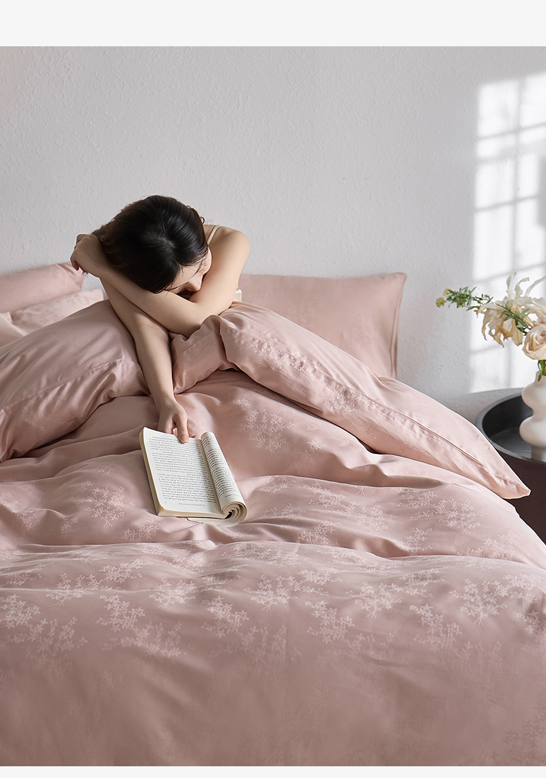 亿梵家居 2025新款高端A类长绒棉四件套全棉提花轻奢全棉四件套 赫本-柔光粉