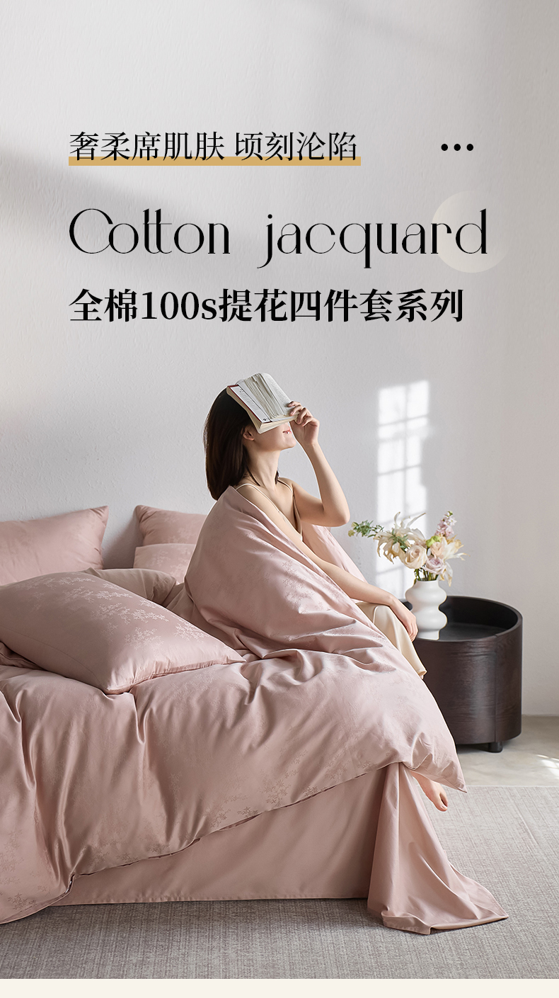 商品名称:亿梵家居 2025新款高端A类长绒棉四件套全棉提花轻奢全棉四件套 赫本-柔光粉