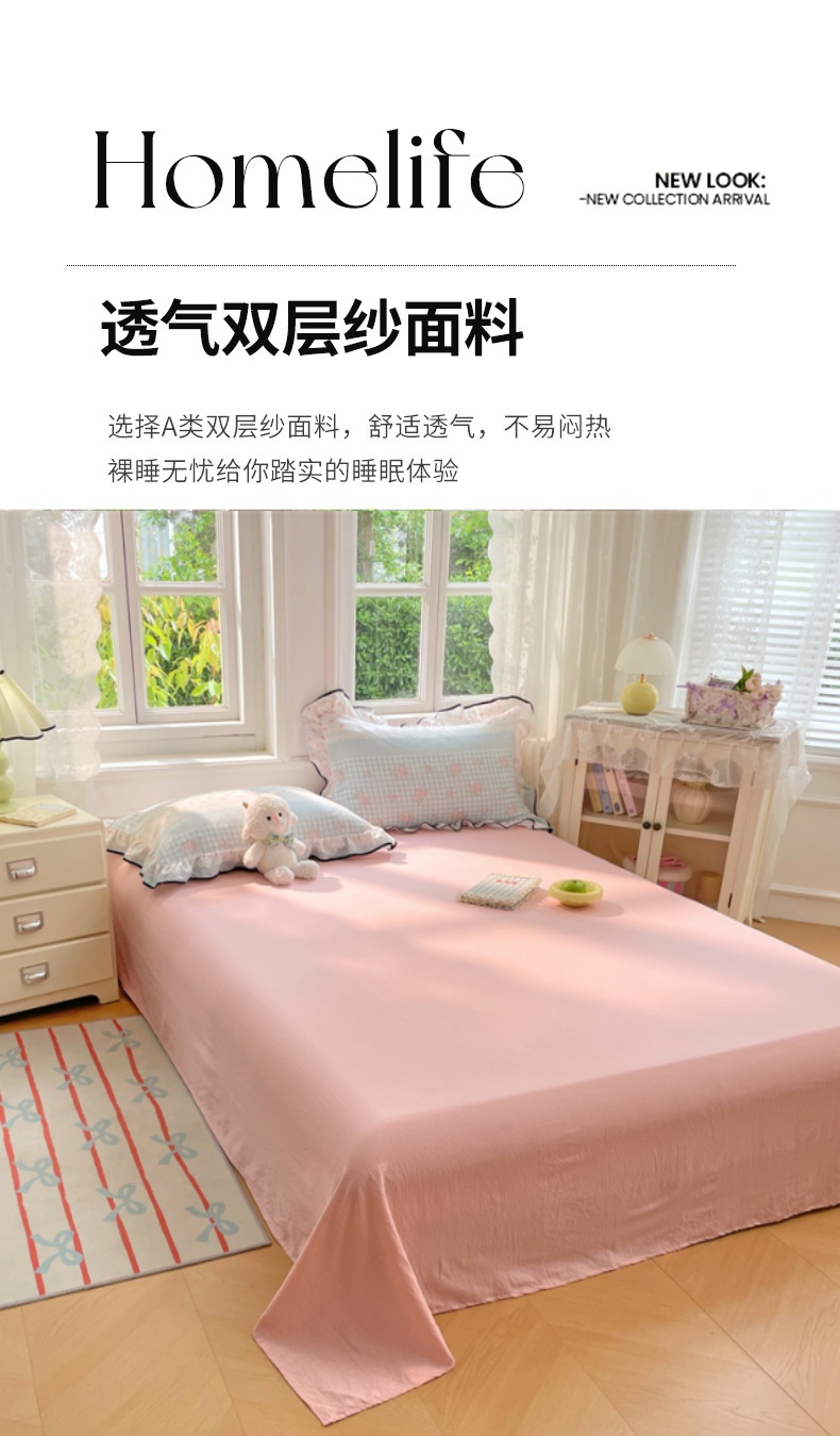 商品名称:梦舒羽 2025新款皱皱双层纱床单宿舍1.2m防尘床单 皱皱樱粉