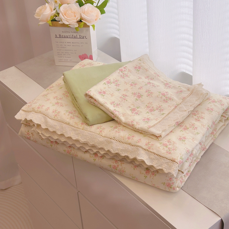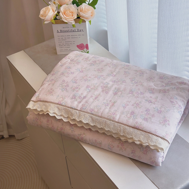 (总)黛馨 2025春夏新款全棉纯棉A类双层纱工艺款夏被夏凉被空调被四件套蕾丝款