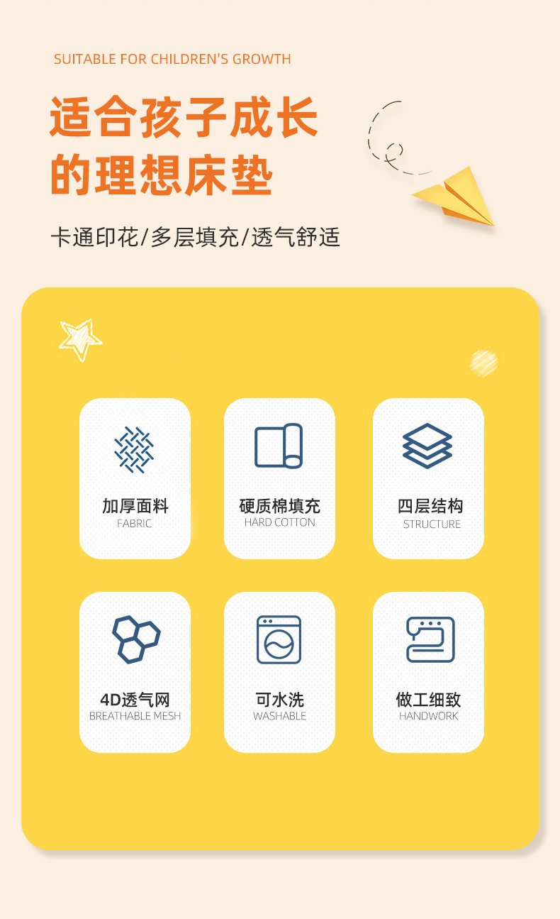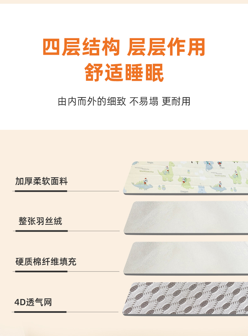 商品名称:御棉坊 2025新款A类水洗棉儿童4D床垫 恐龙骑士
