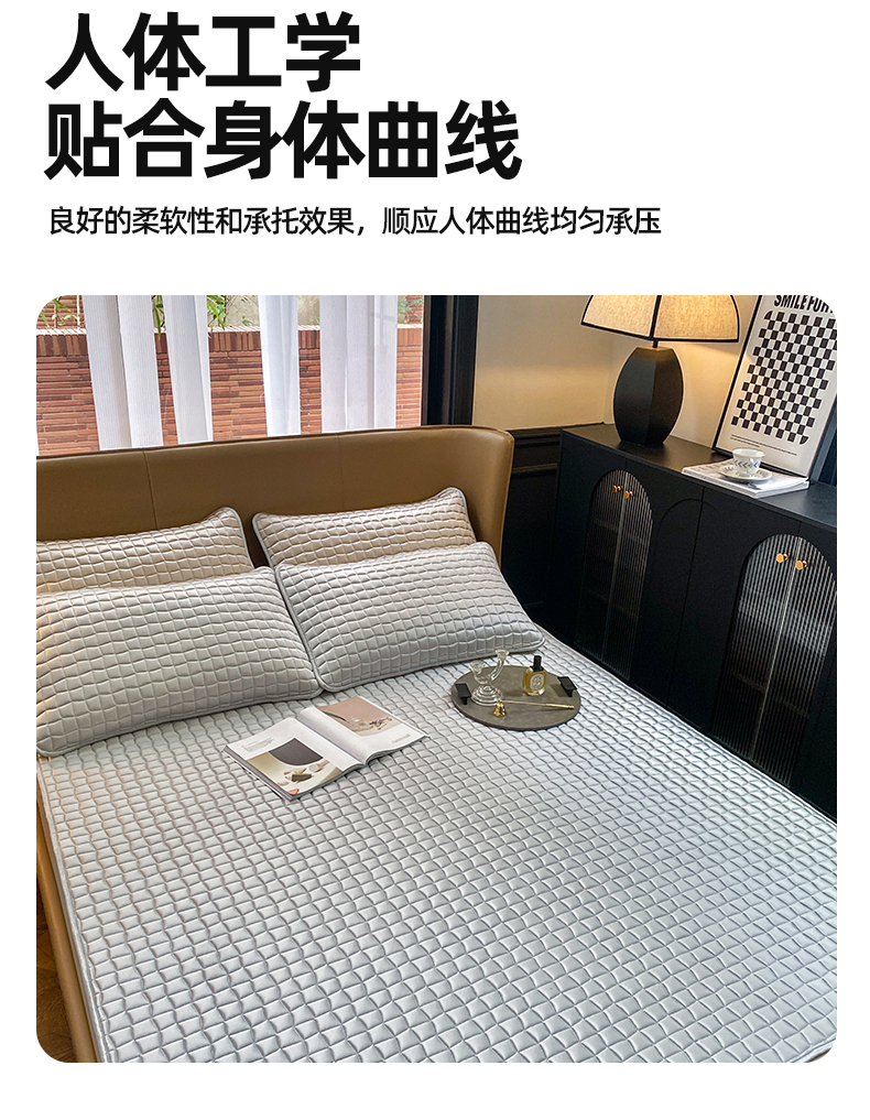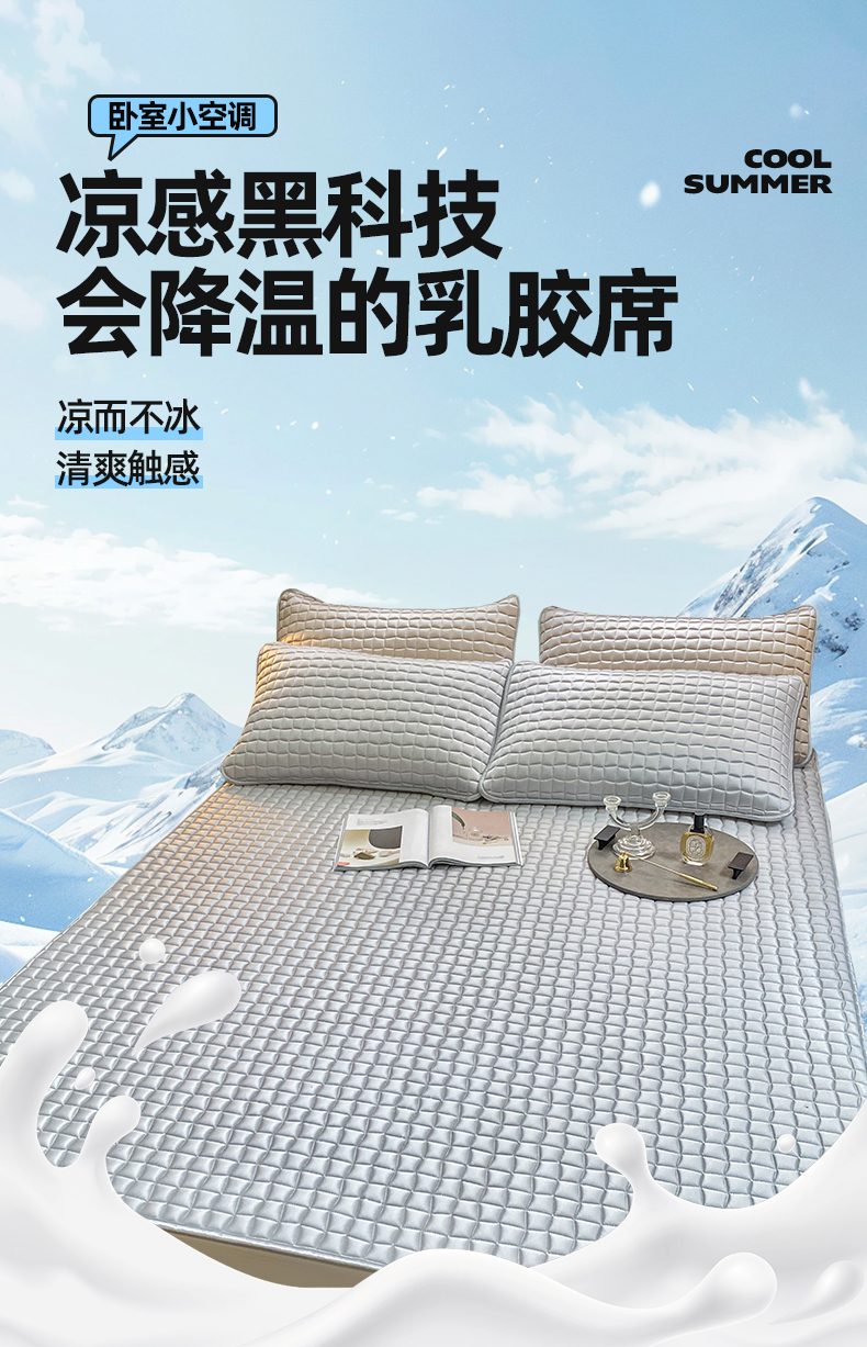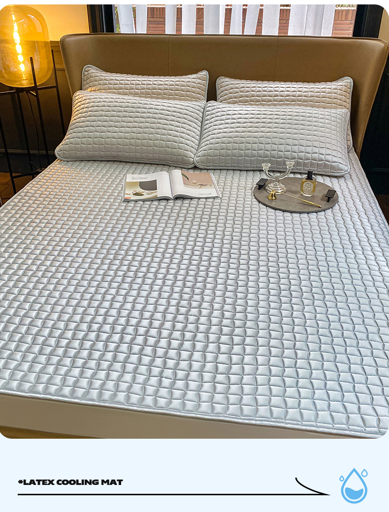 (总)罗优家纺 2025新款水光美 肤冰块凉席,蜜豆粉,浅银灰,香槟金
