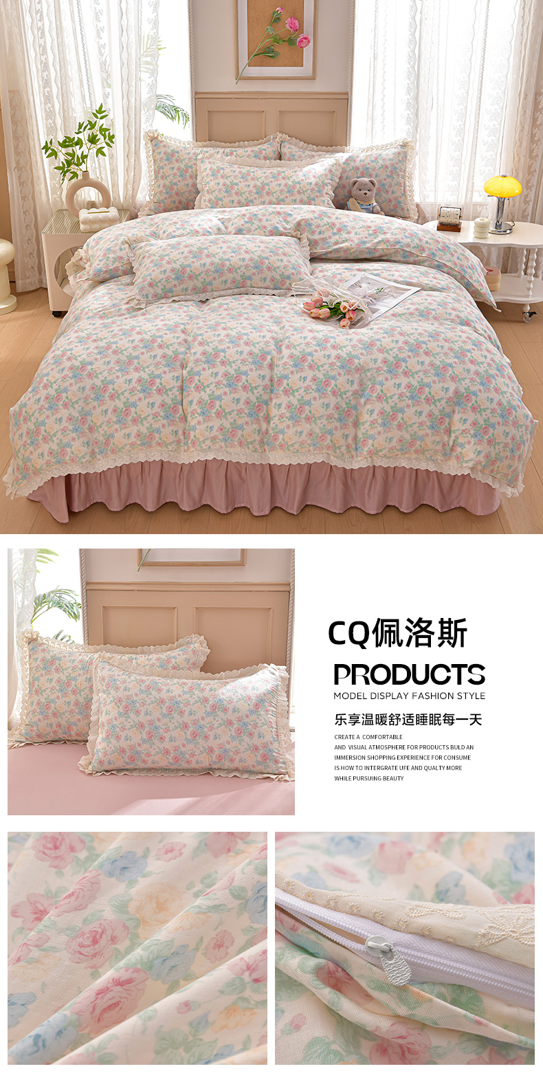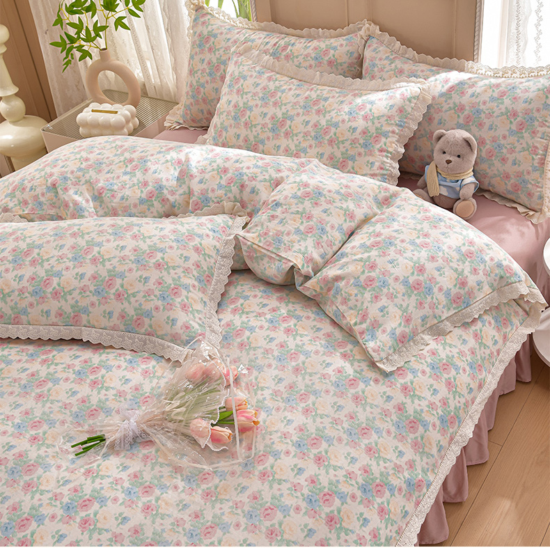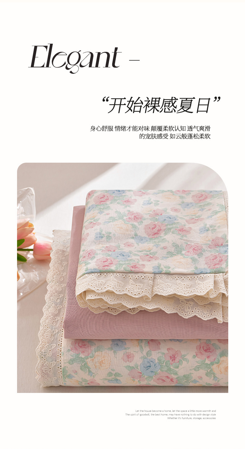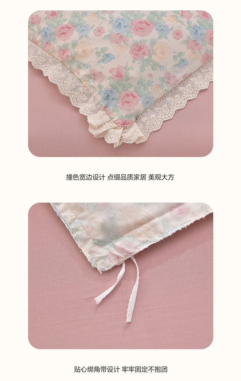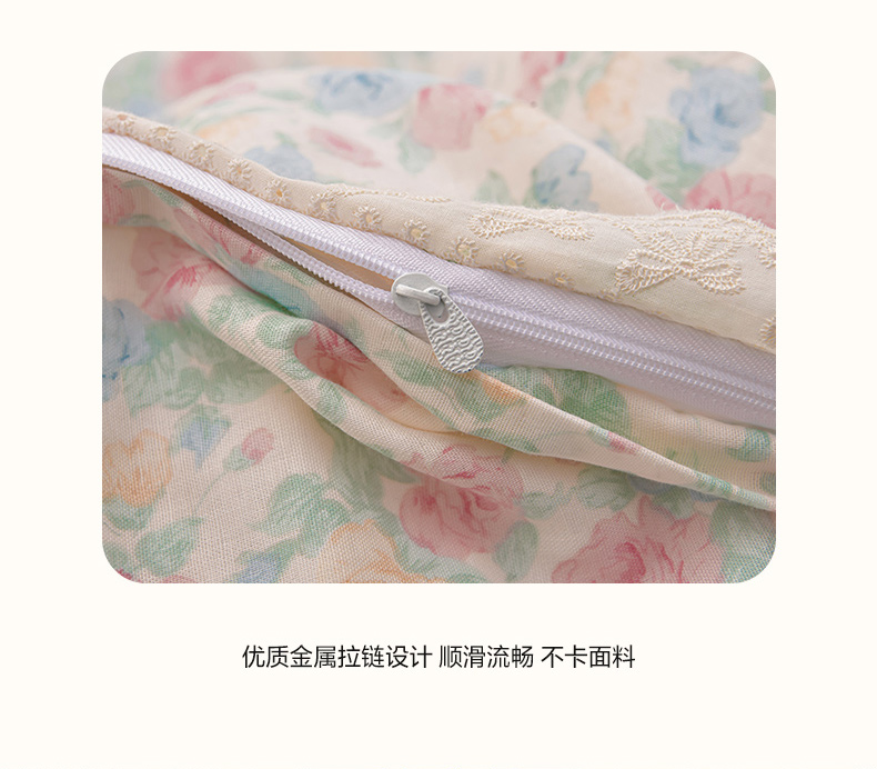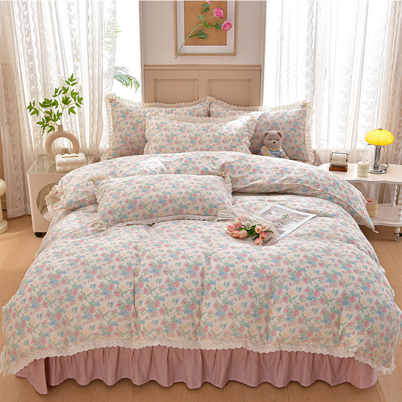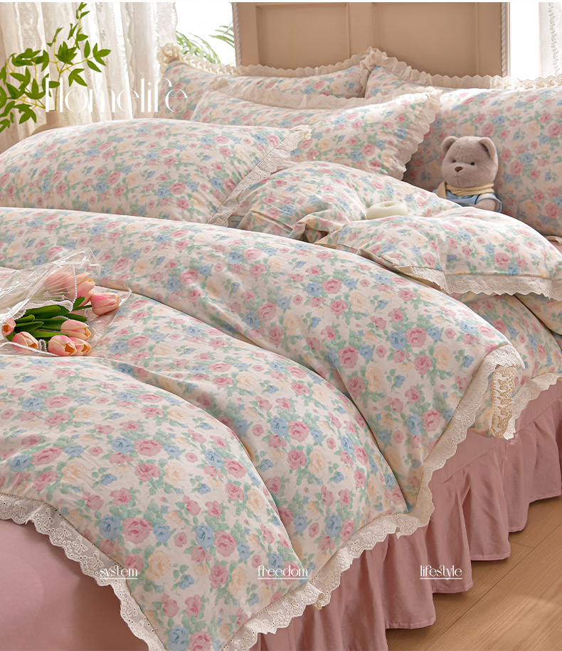 商品名称:绘萱家居 2026春夏新款纯棉100%全棉双层纱镂空花边工艺款床裙四件套 CQ佩洛斯