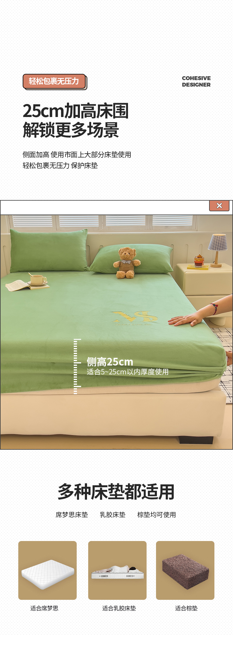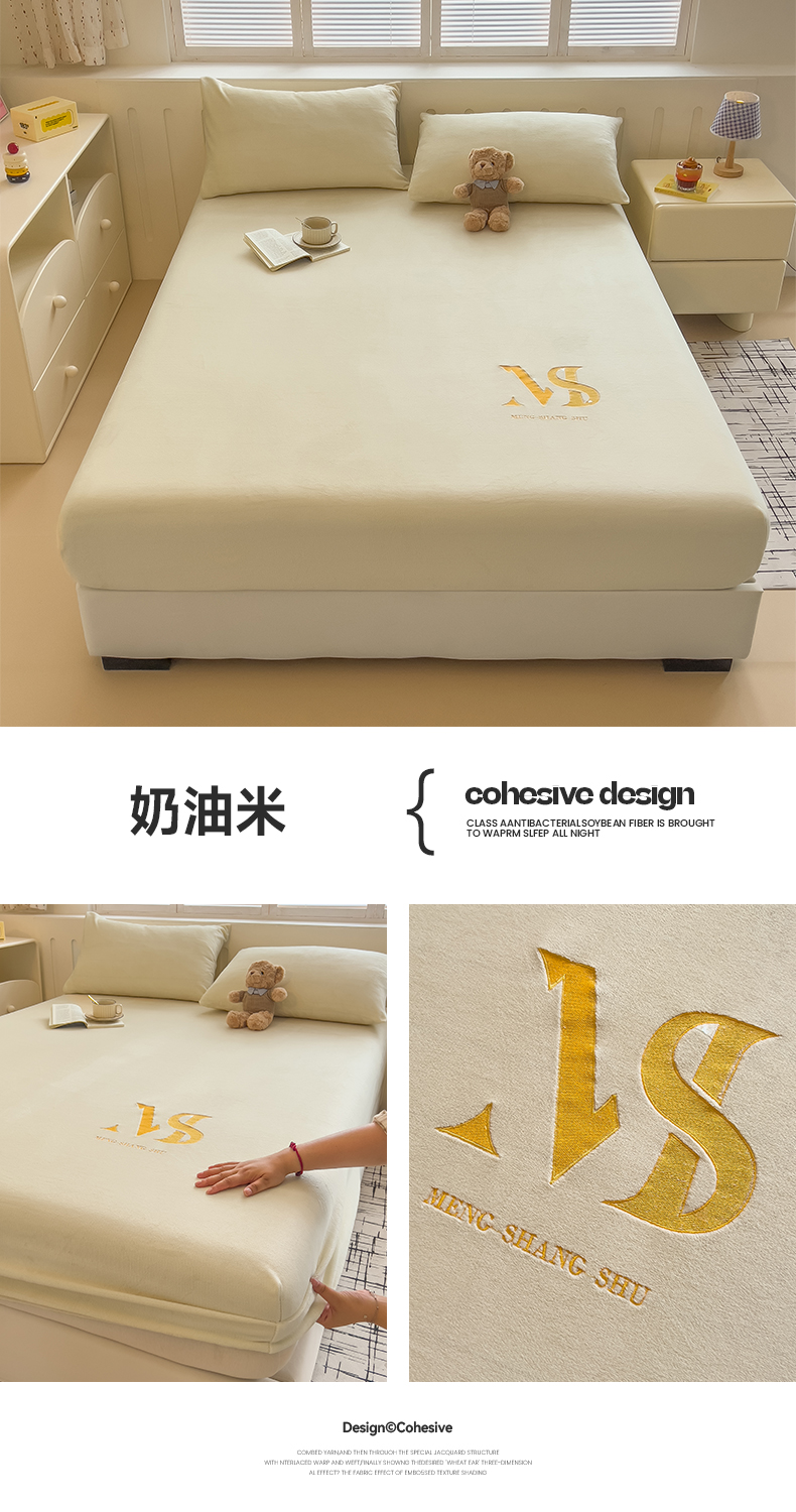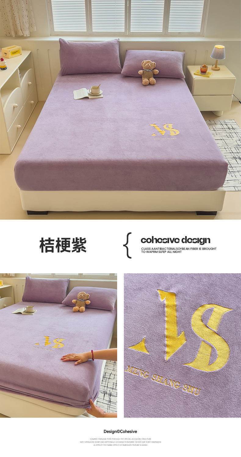 合纵跨境工厂 2025新款加厚简约牛奶绒刺绣系列跨境外贸JIT一件代发TEMU亚马逊希音包过核价 床笠 崧蓝灰
