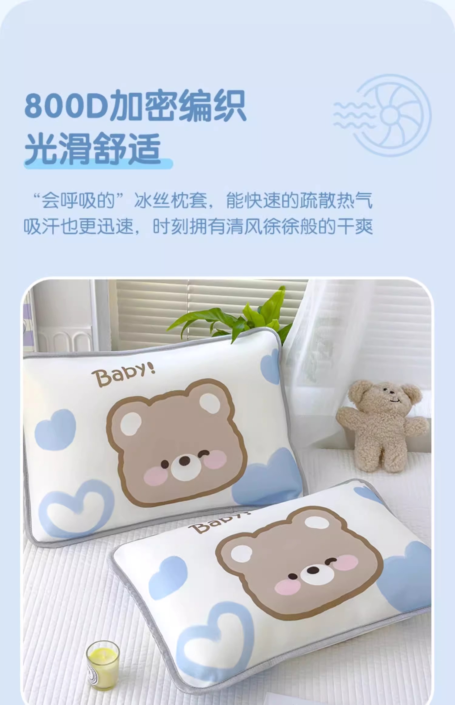 丽美人家纺 2025新款儿童冰丝枕套 可可熊