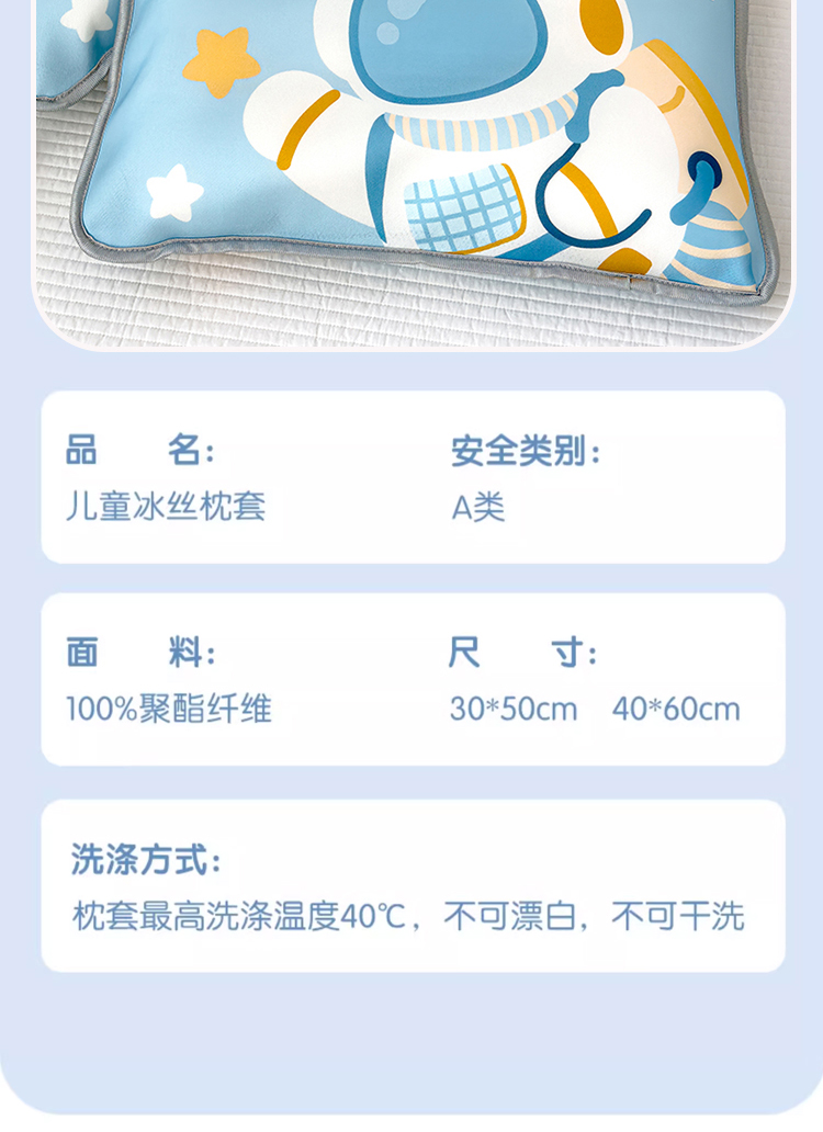 商品名称:丽美人家纺 2025新款儿童冰丝枕套 宇航员