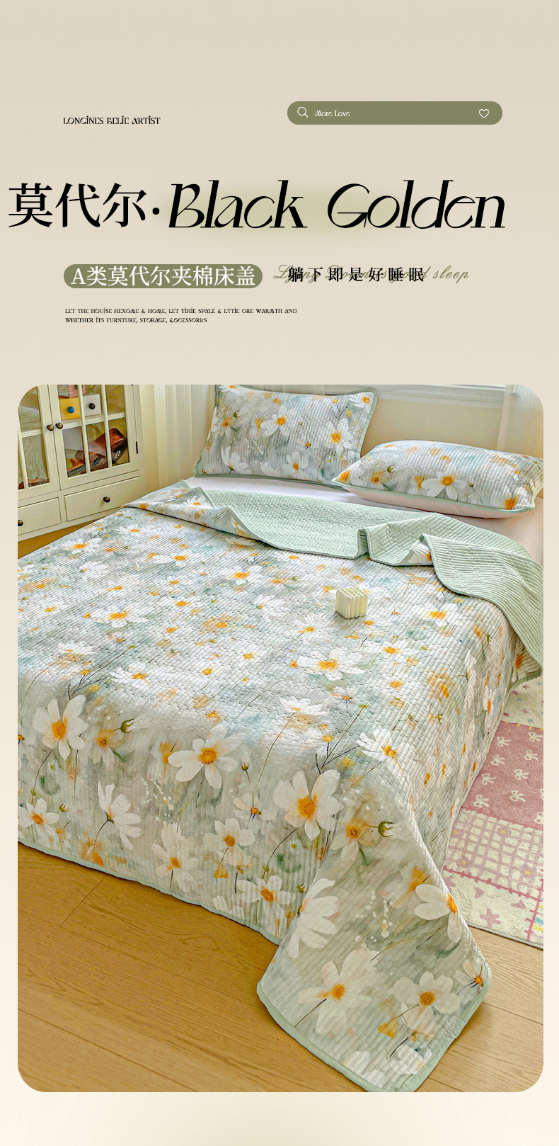 • 91家纺网 家纺一手货源 找家纺 恒尚居 2025新款莫代尔天丝夏季床盖印花夹棉床单三件套床褥垫-系列二 莫代尔-柔情蜜意