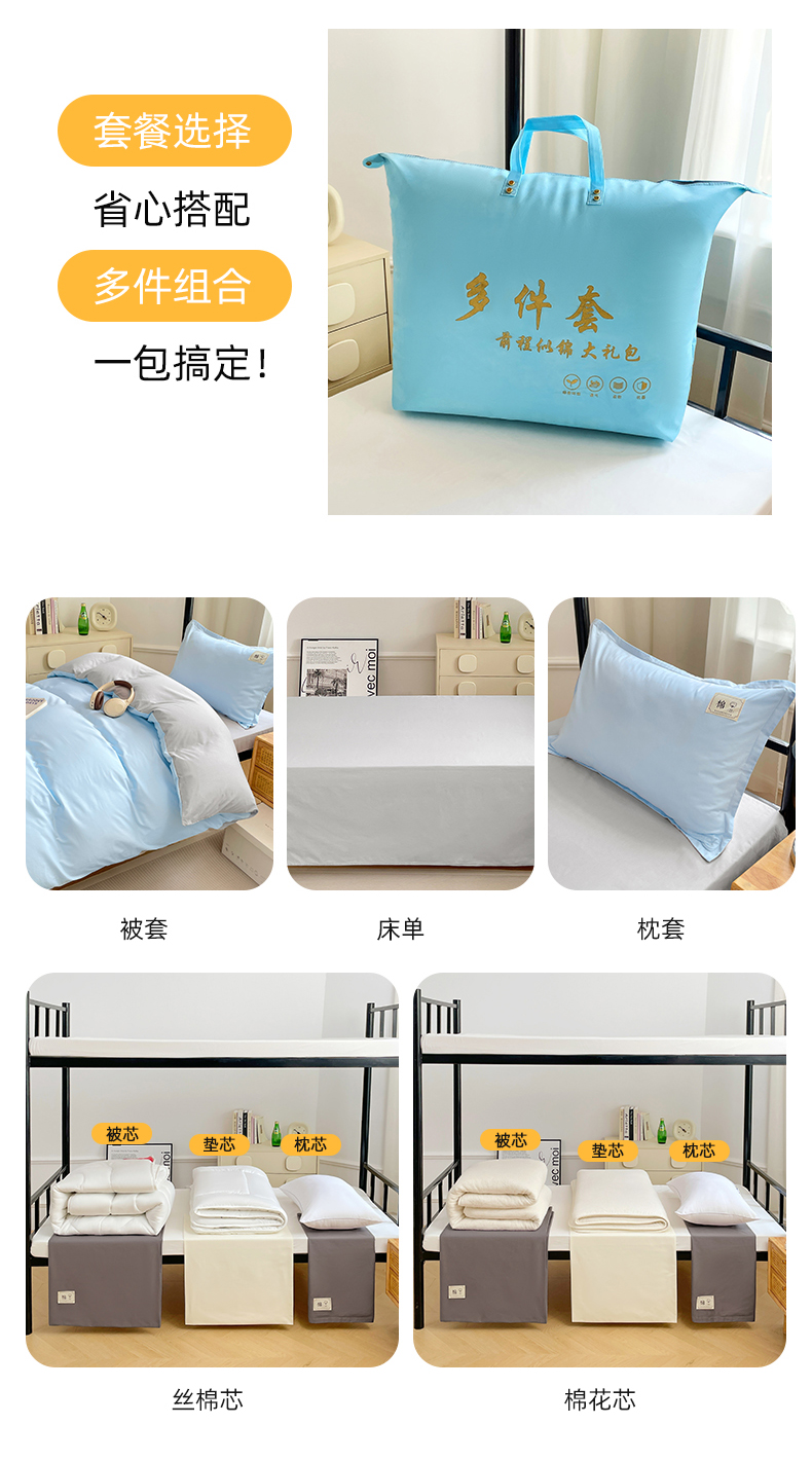 六件套:【三件套+4斤羽丝绒被子+4斤羽丝绒床垫(90*200)+枕芯】 | ¥149.00 |